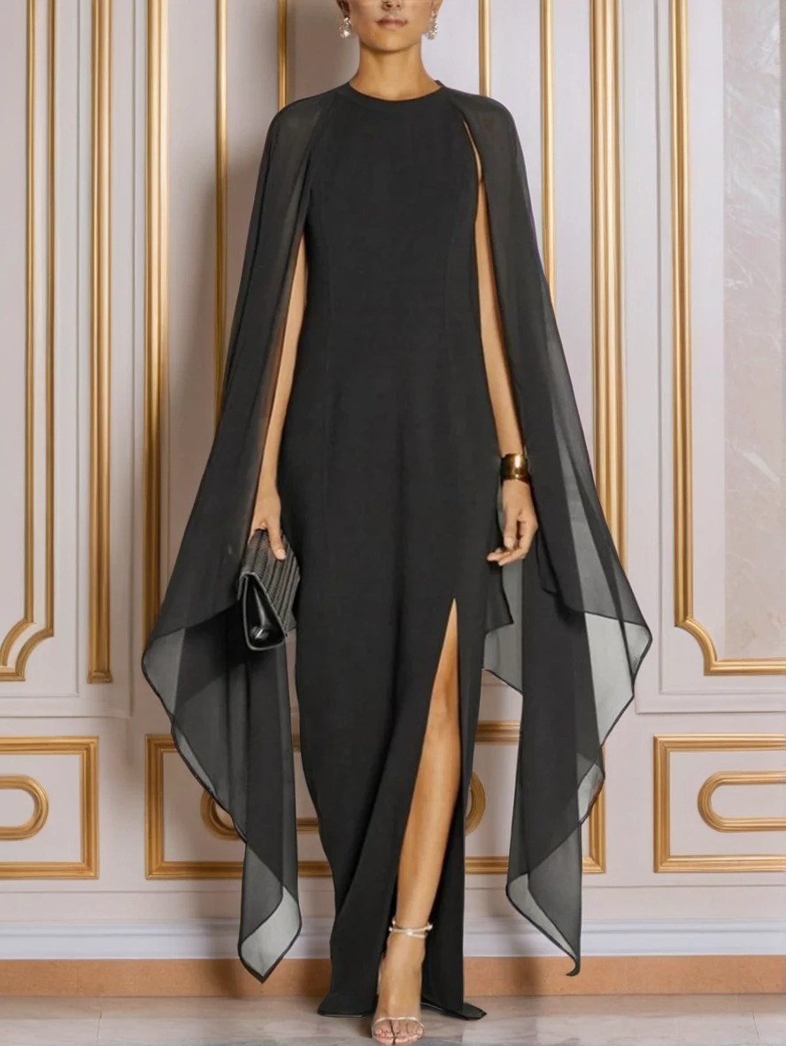 Elegant Thigh Split Hem Cloak Sleeve Maxi Dress