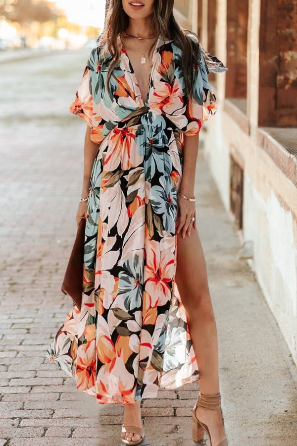 Sexy Deep V Neck Irregular Ruffle Bohemian Party Fashion Maxi Dress