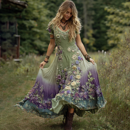 Classy Gradient Purple Lavender And Floral Embroidered Linen Maxi Dress