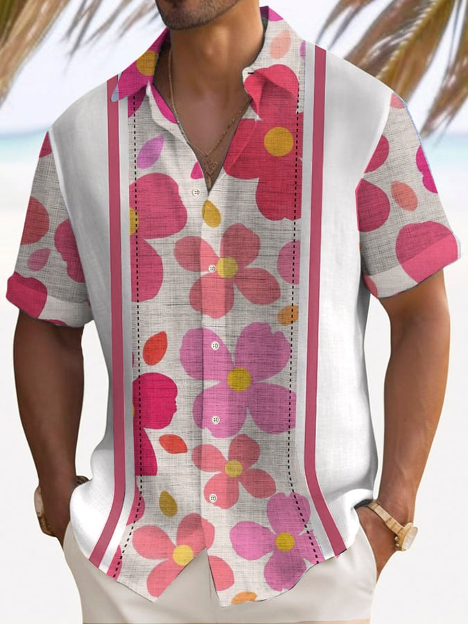 Fashion Holiday Contrast Printed Men's Short Sleeve Shirt