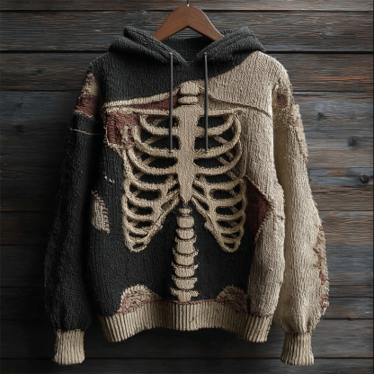 Halloween Skeleton Crochet Contrast Anatomy Cozy Knit Hooded Sweater