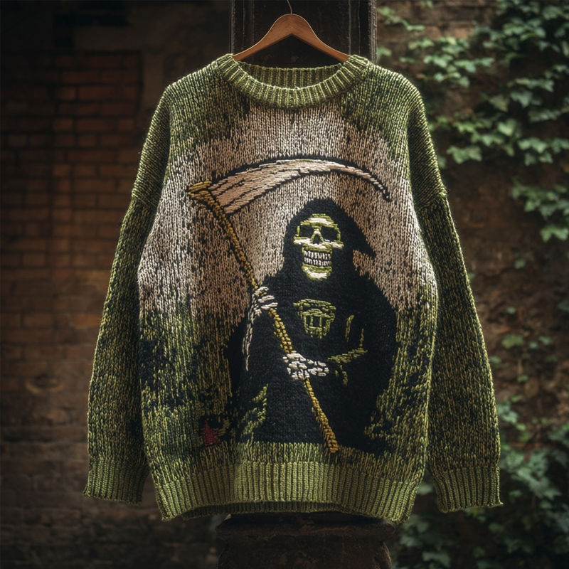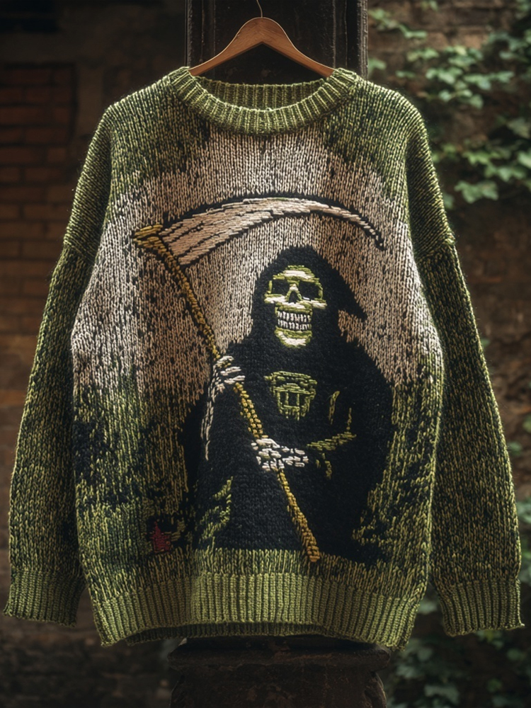 Halloween Spooky Ghoul Embroidered Crew Neck Cozy Knitted Sweater