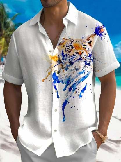 Leisure Holiday Tiger Print Men'S Short-Sleeved Shirt