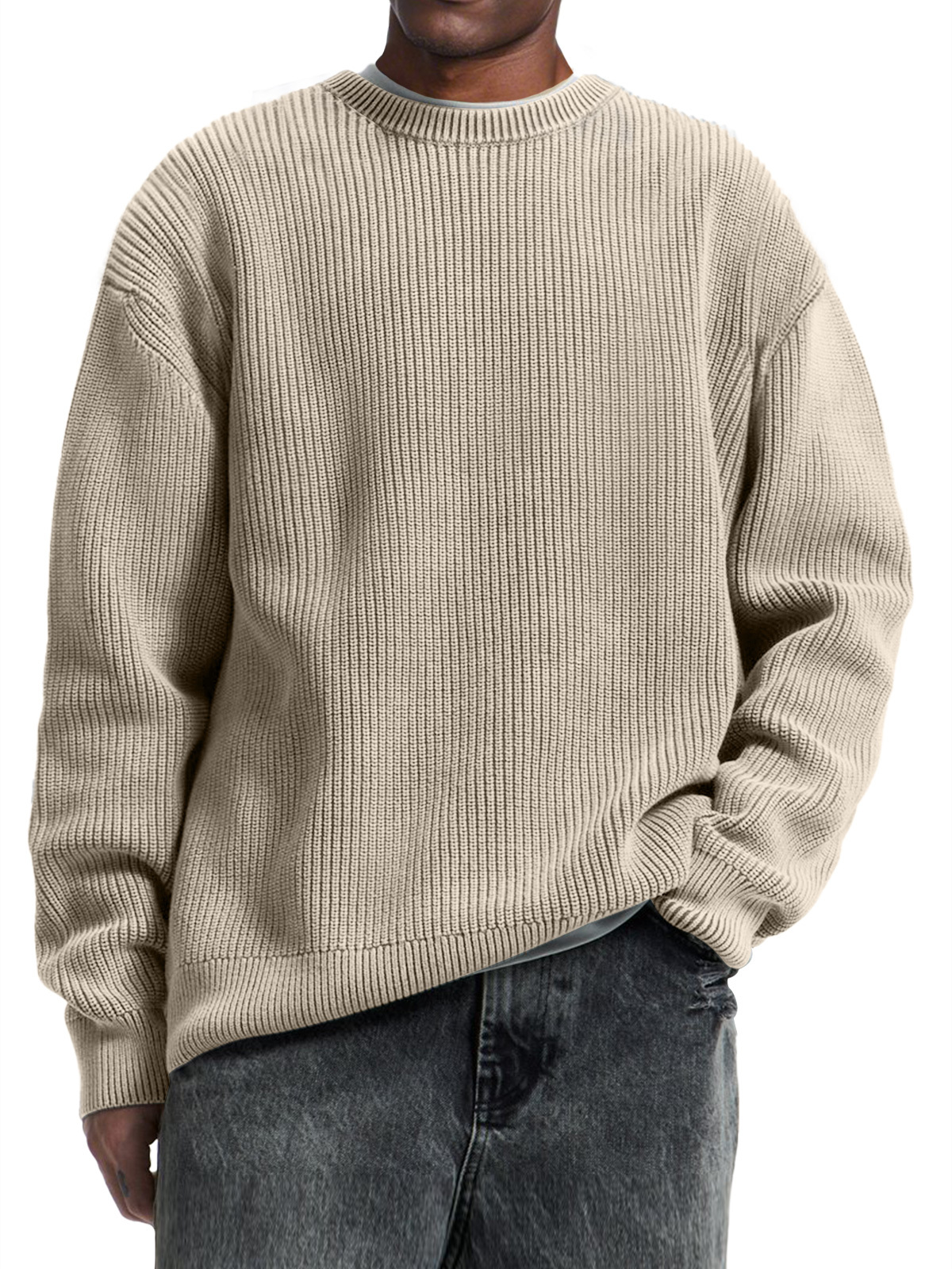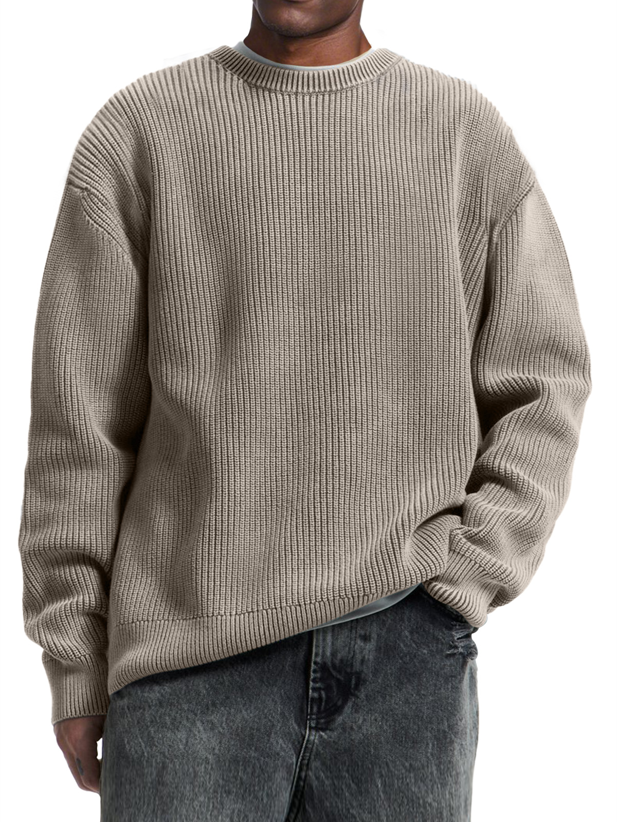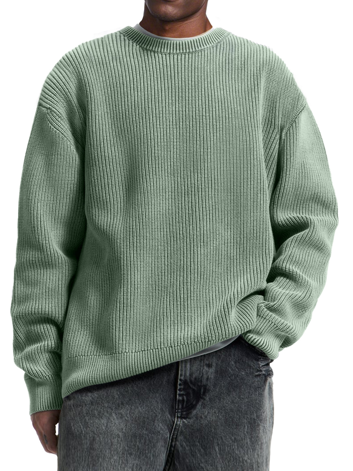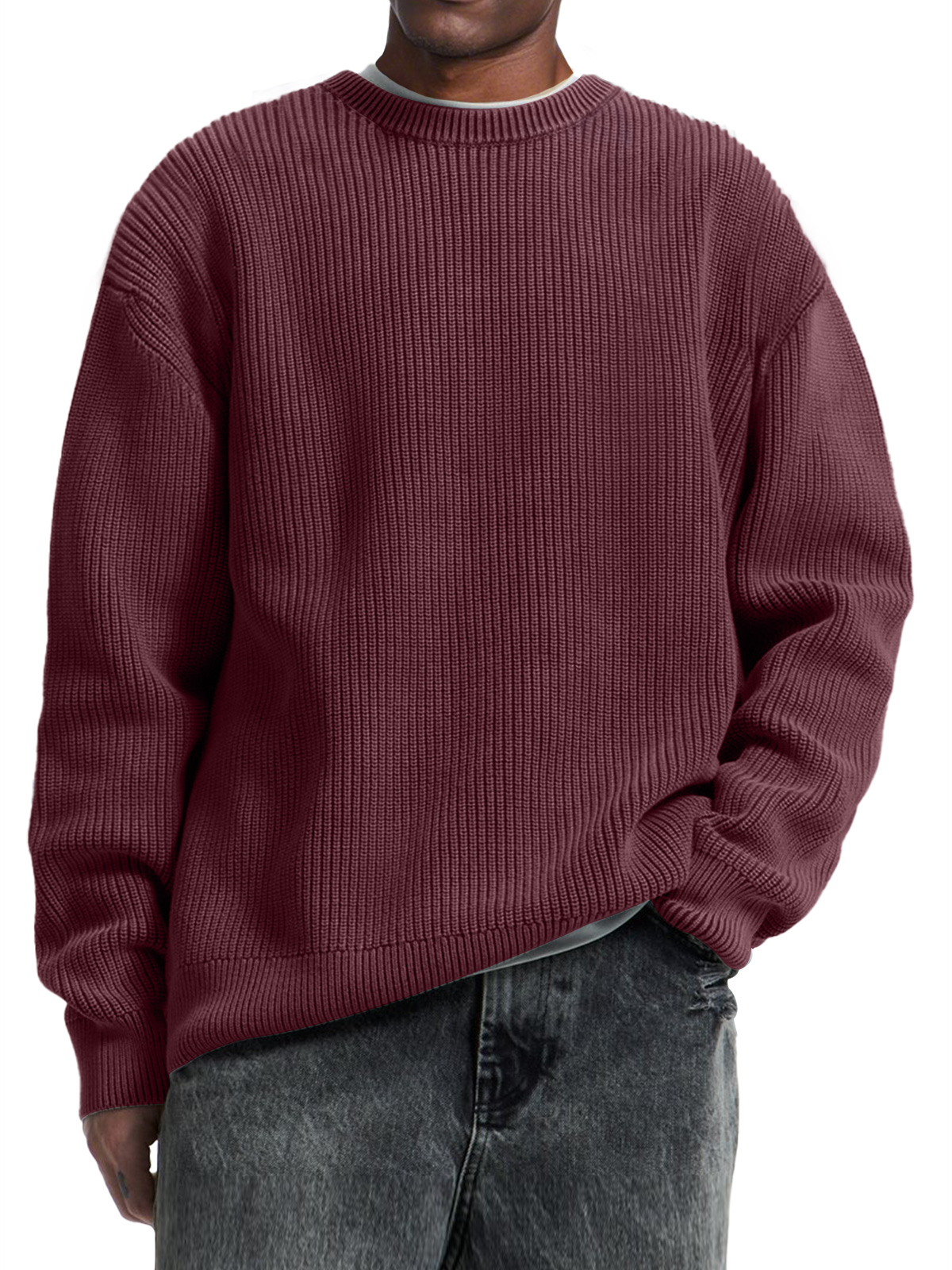 Men's Casual Round Neck Solid Color Comfortable Knitted Sweater