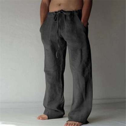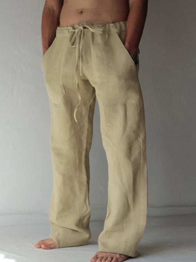 Men's Casual Solid Drawstring Cotton Linen Pants