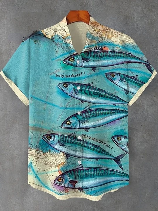 Men's Vintage Sardines Flying Map Print Shirt