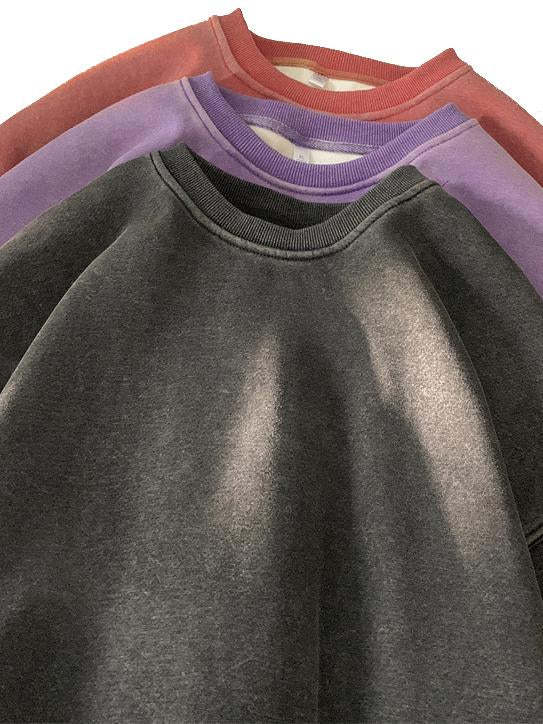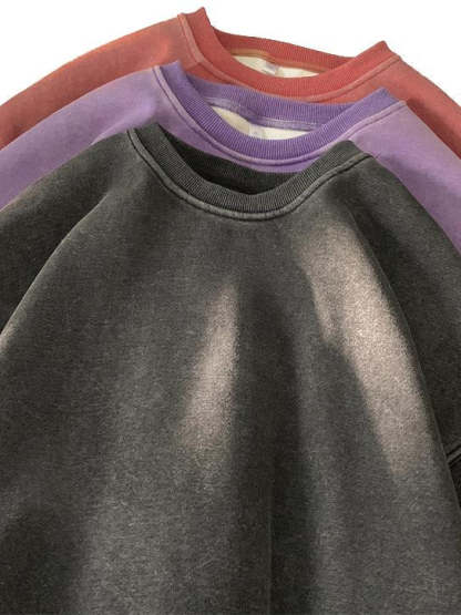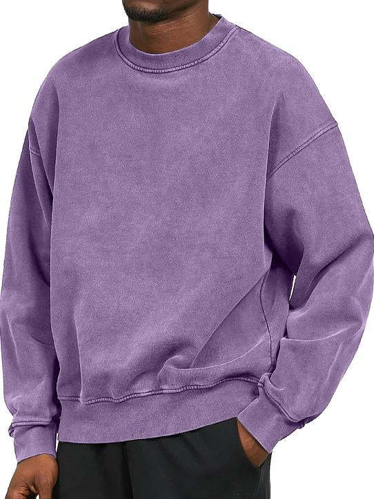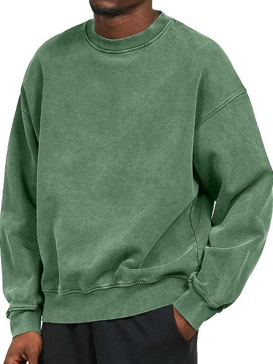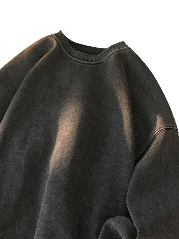 Men's Washed Distressed Cotton Basic Round Neck Long-sleeved Sweatshirt