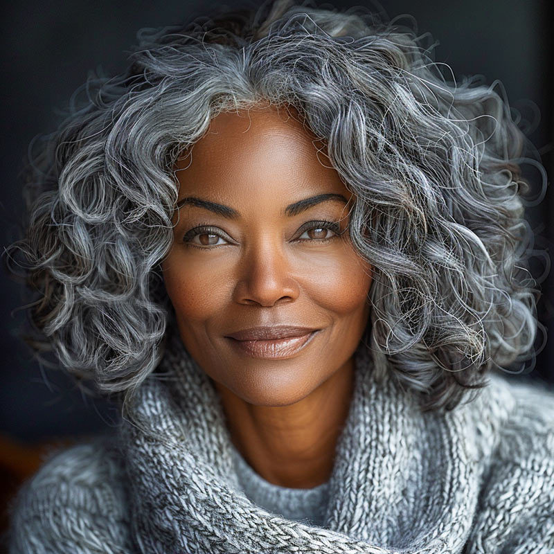 Big Loose Curly Silver Grey Wig For Seniors Salt & Pepper Hair 4x4 Lace Bob Wigs For Women