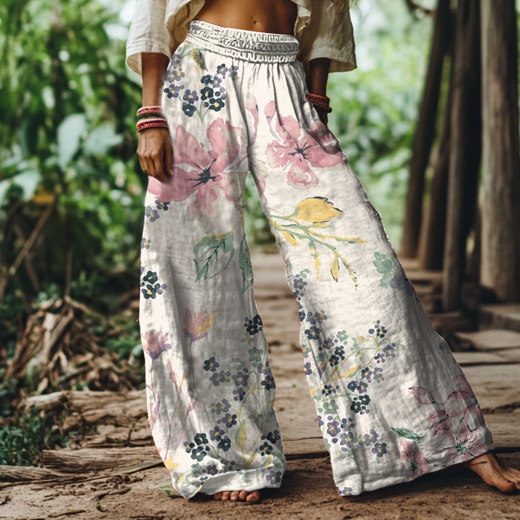 Vintage Floral Art Print Loose Pants