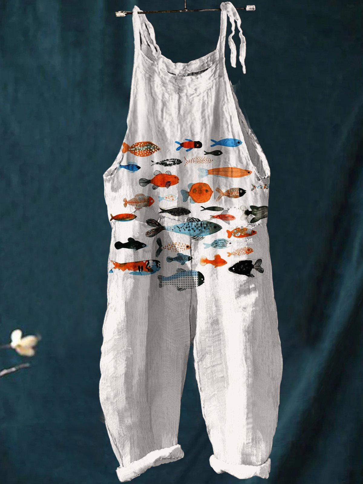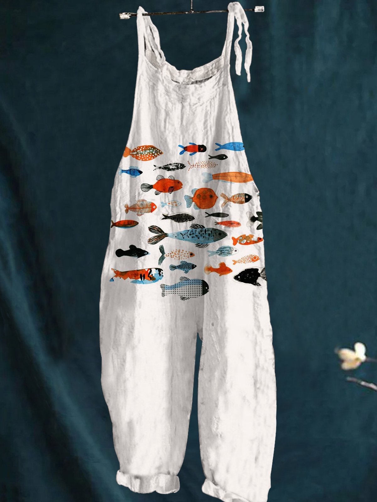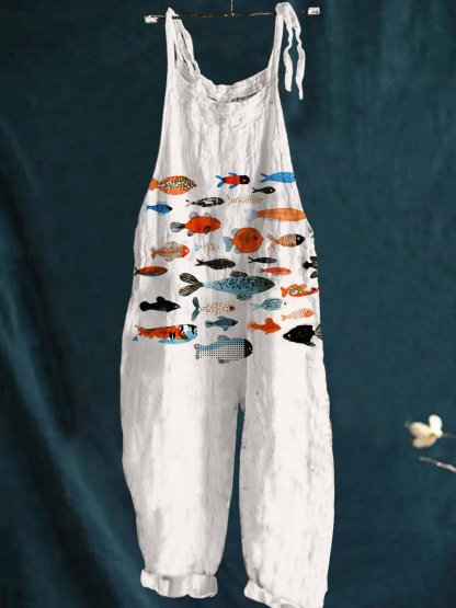 Women's Colorful Cute Little Fish Print Casual 100% Cotton Wide Leg Jumpsuit