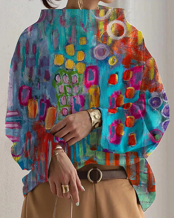 Women's Half-high Collar Abstract Geometric Print Loose Casual Sweatshirt
