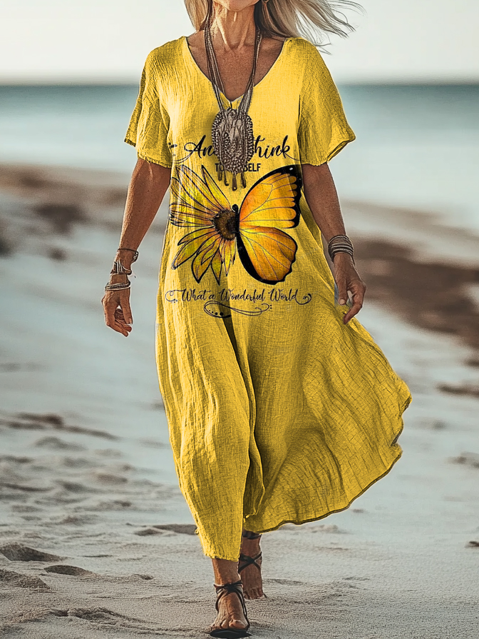 Women's Hippie Art Print Pocket Cotton Dress