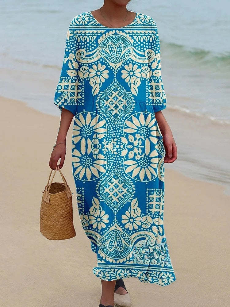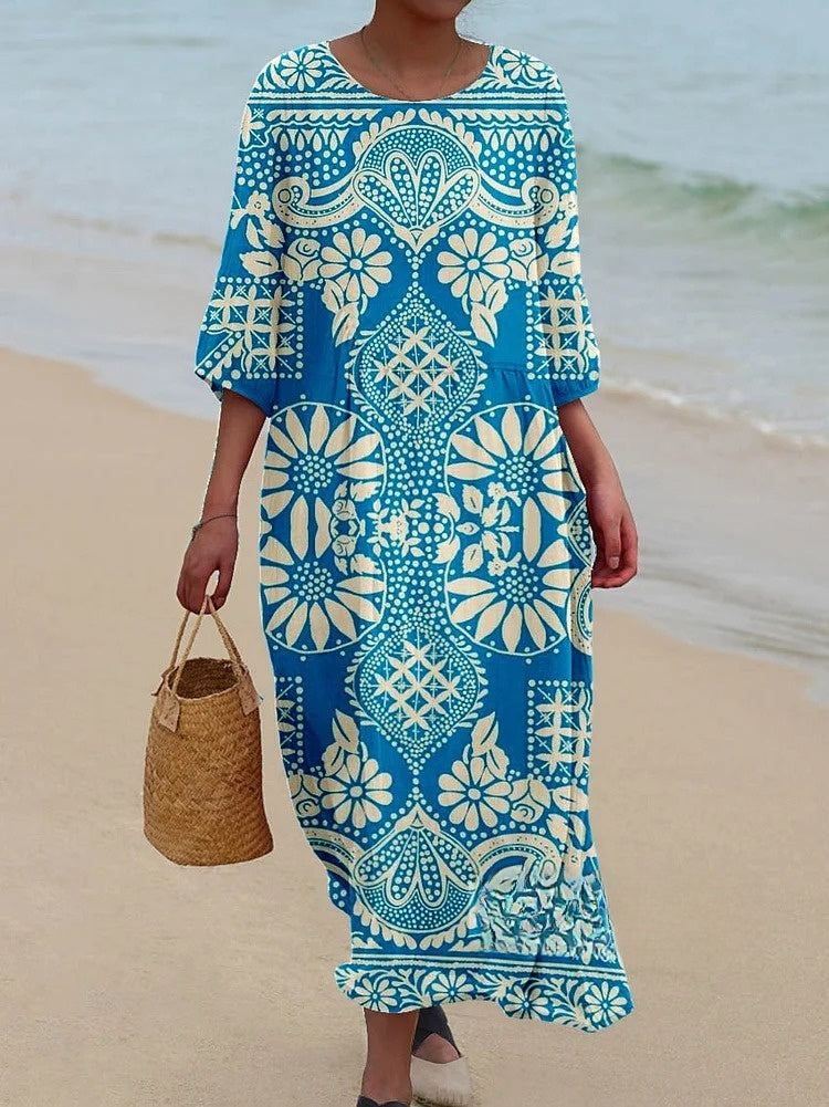 Women's Retro Ethnic Style Symmetrical Pattern Pocket Cotton Dress