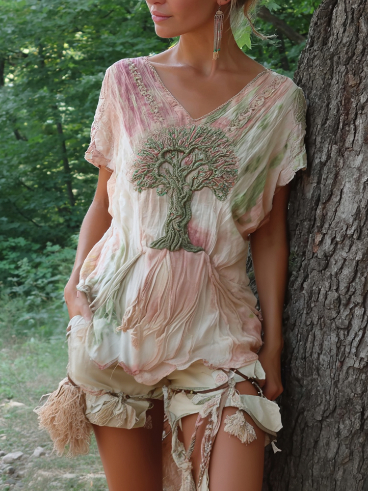 Women's Tree Of Life Tie-dye V-neck T-shirt