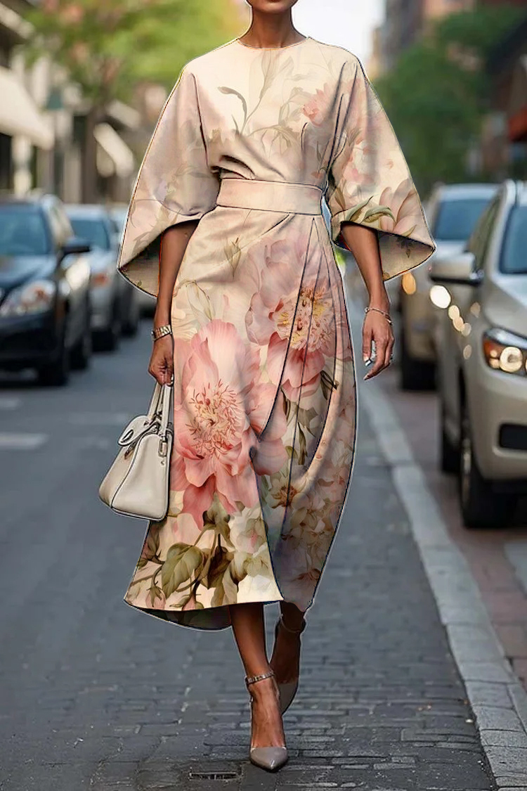 Women's Vintage Elegant Floral Print Midi Dress