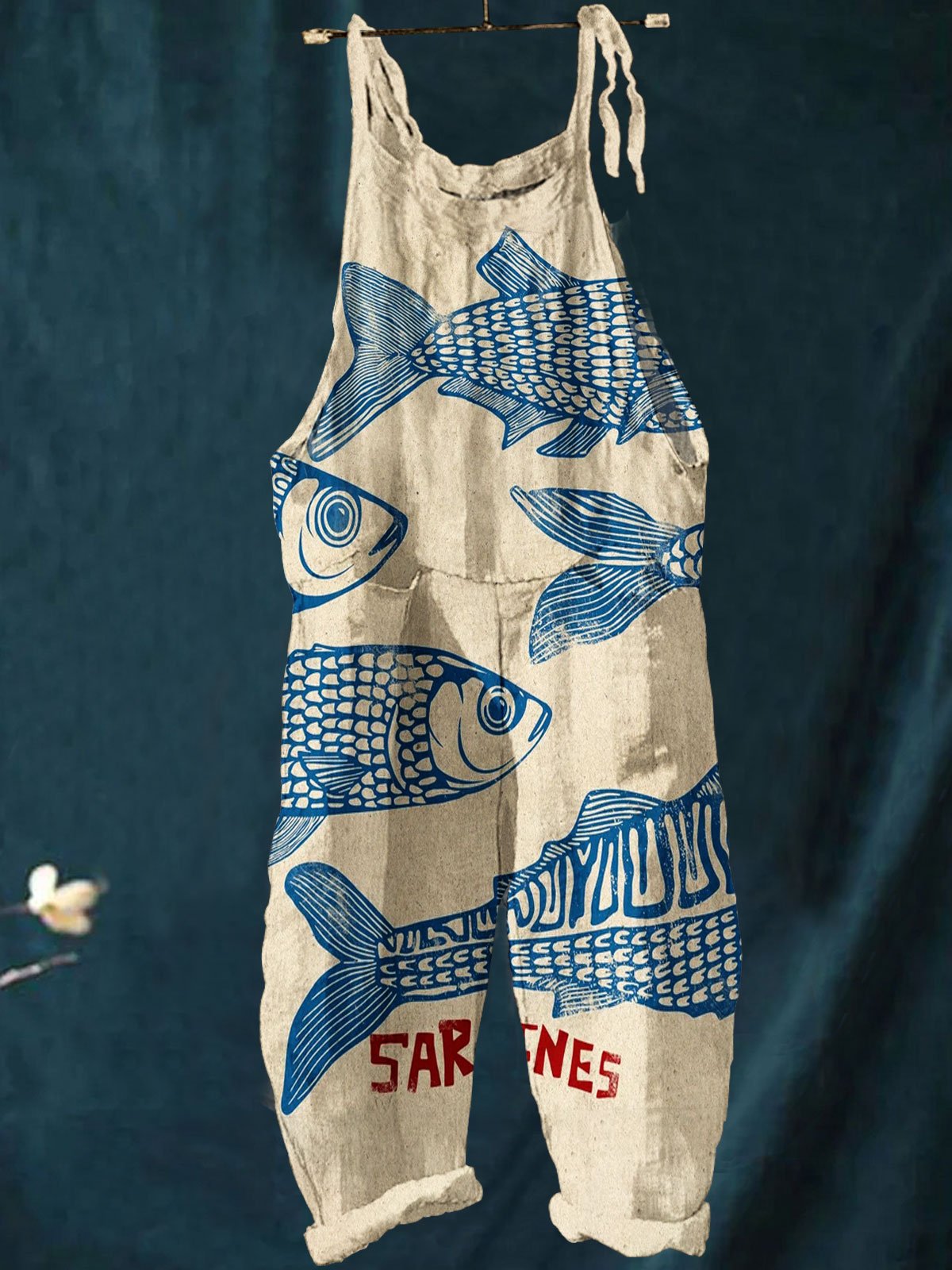 Women's Vintage Fish Sardines Art Print Casual 100% Cotton Wide Leg Jumpsuit