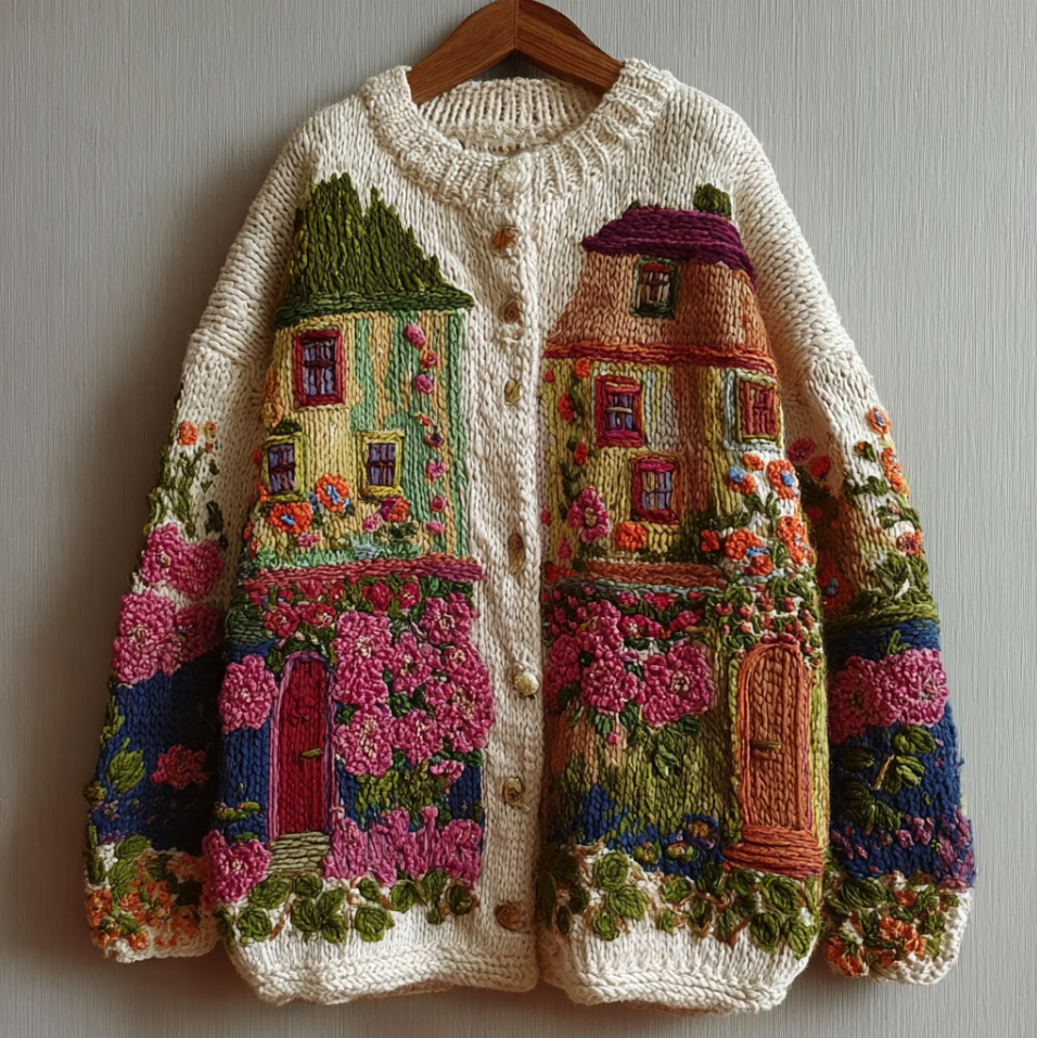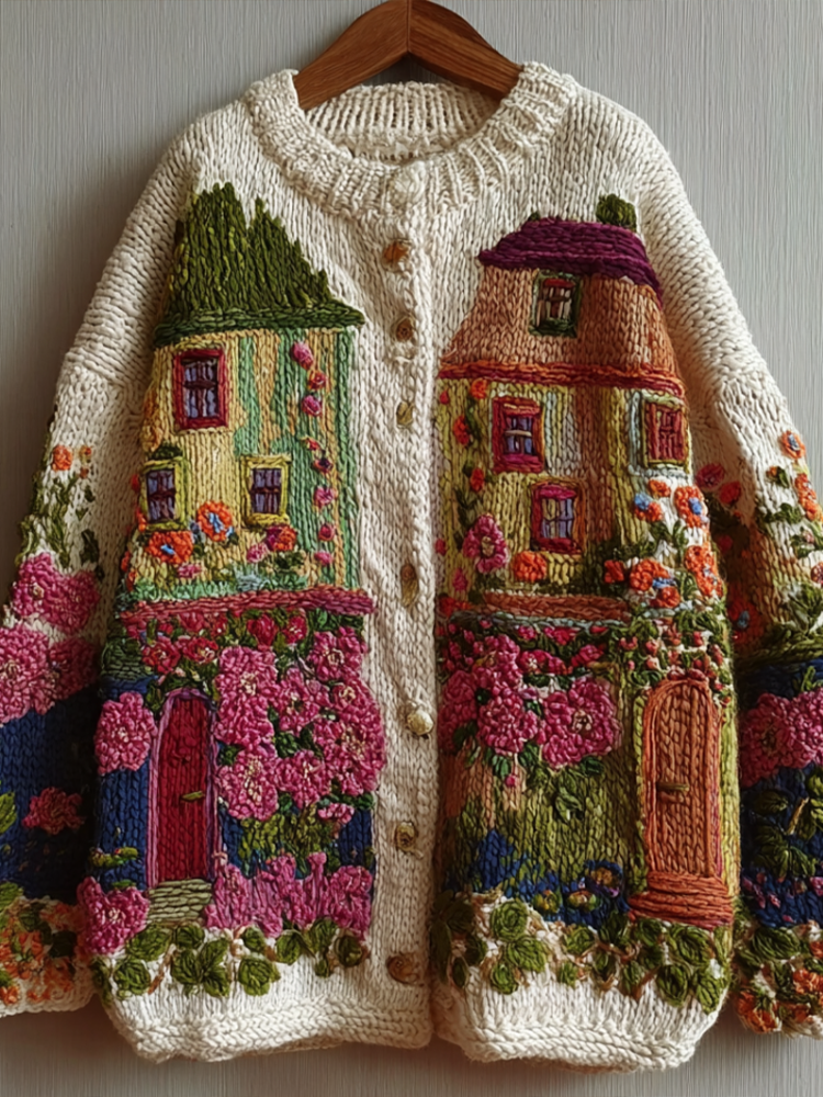 Bohemian Style Garden Pattern Design Women's Knitted Sweater Coat