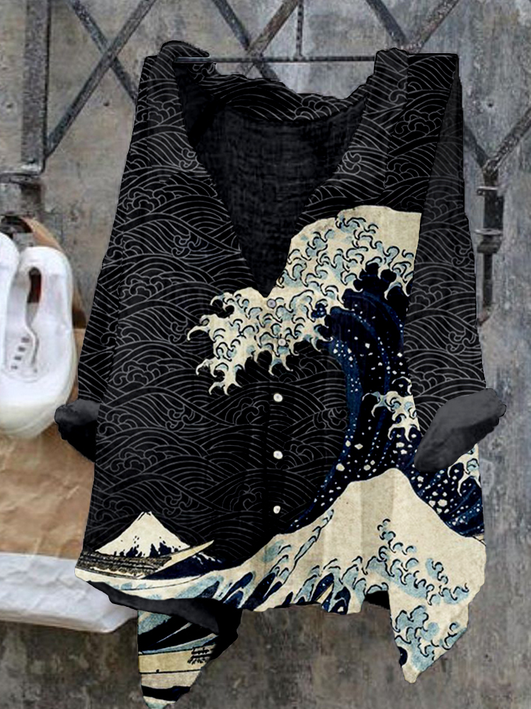 Japanese Wave Art Loose and Comfortable Shirt