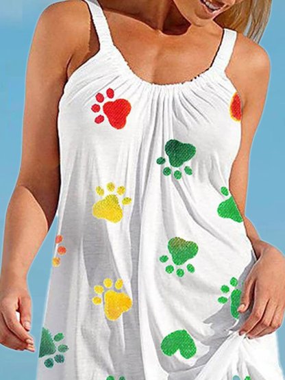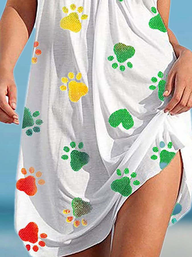 Fashion Crew Neck Sleeveless Print Dress