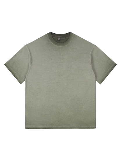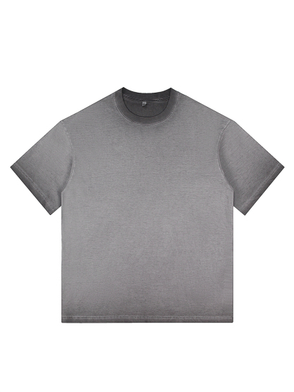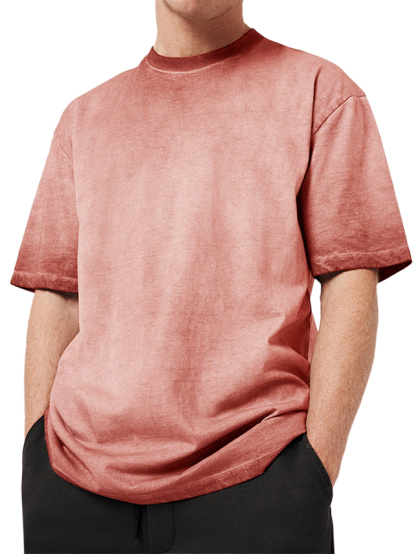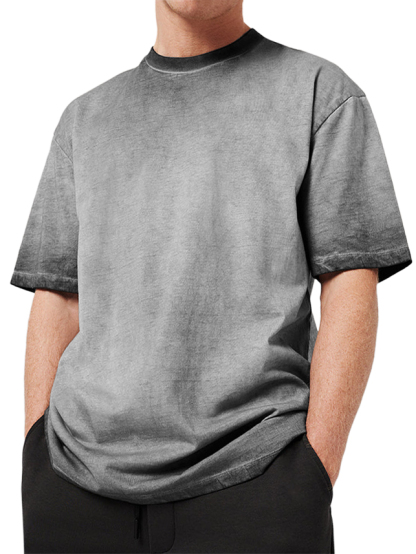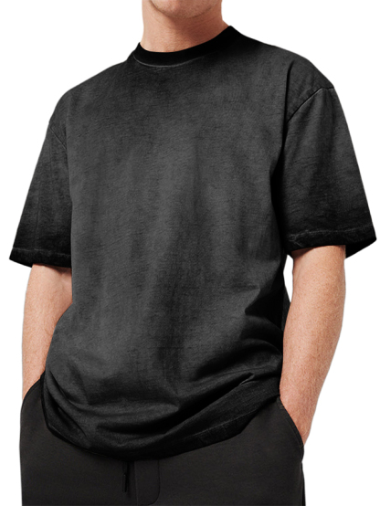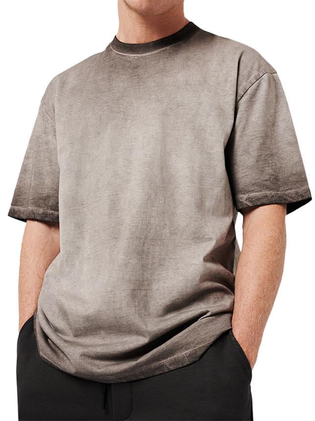 Men's 100% Cotton Washed Distressed Retro Gradient Casual Short-sleeved T-shirt