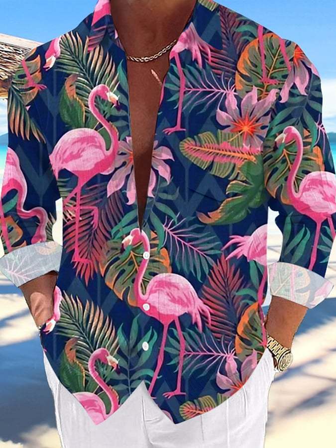 Men's Casual Hawaiian Coconut Flamingo Lapel Shirt