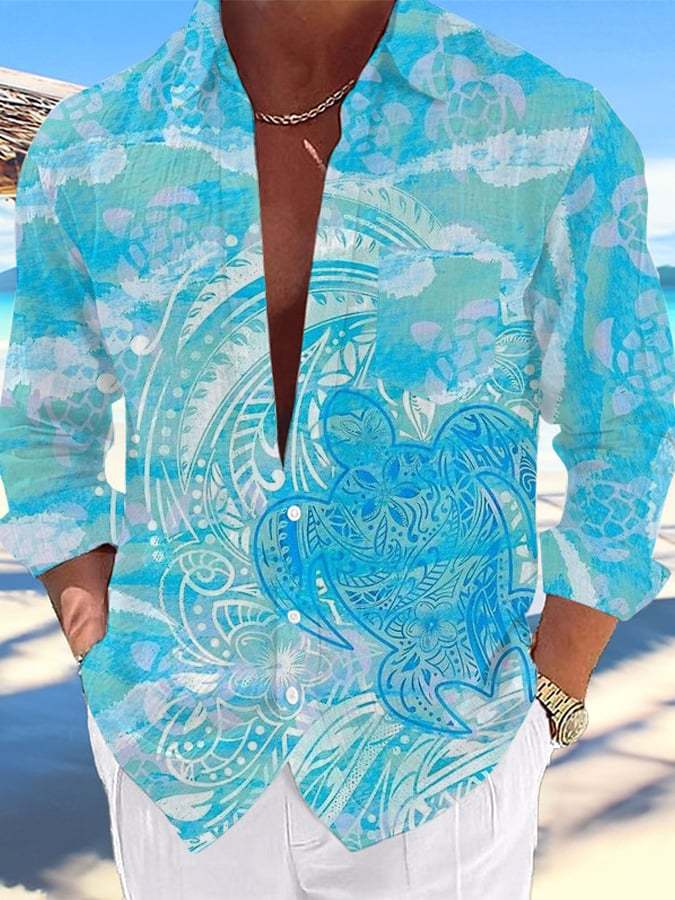 Men's Casual Hawaiian Turtle Print Lapel Shirt