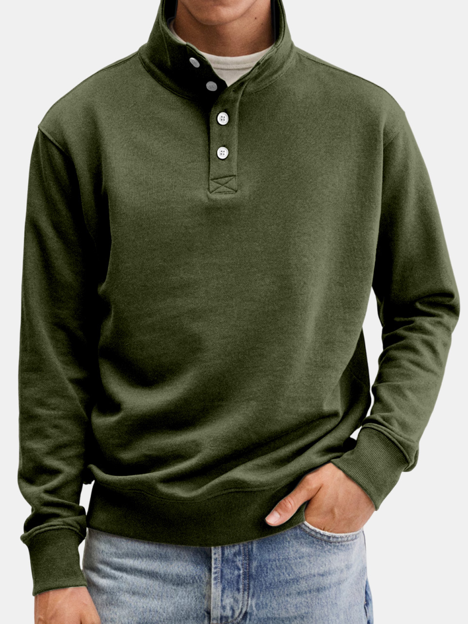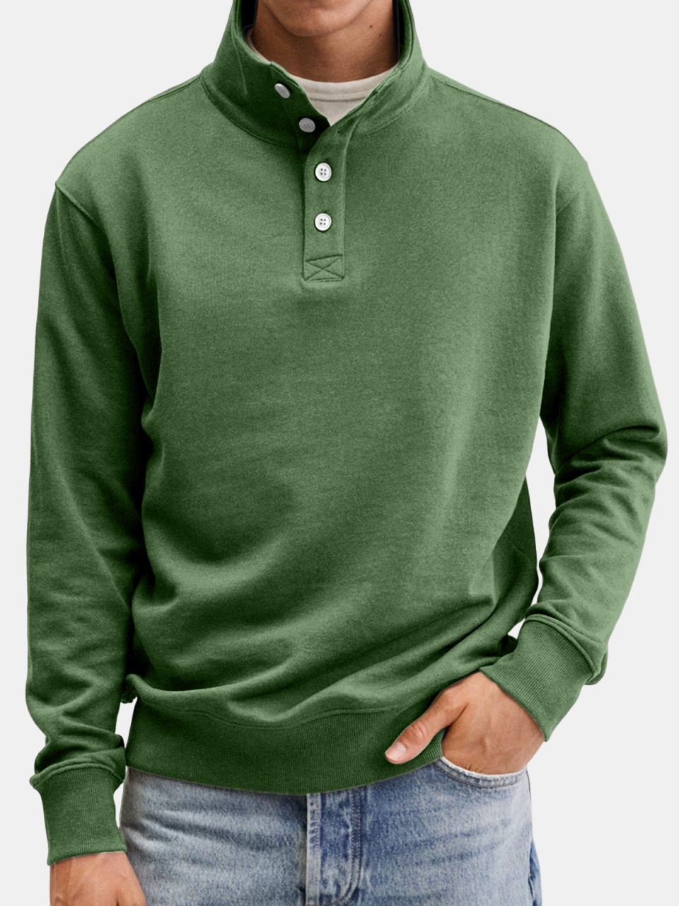 Men's Casual Solid Color Stand Collar Button Sweatshirt