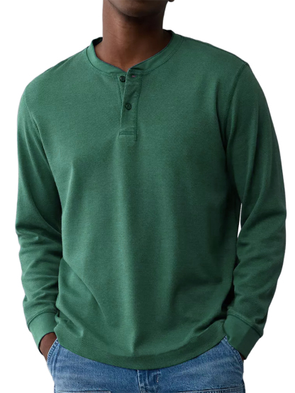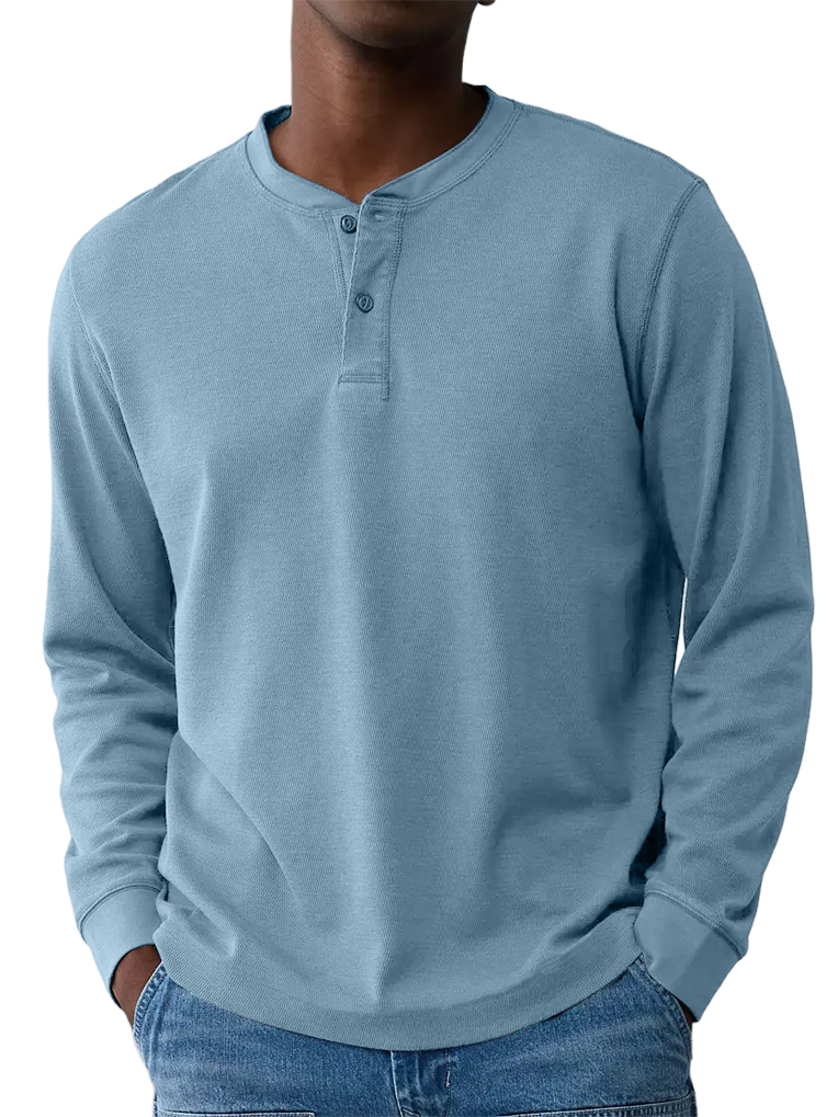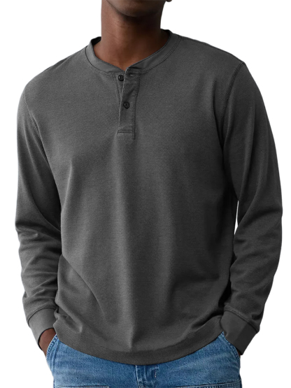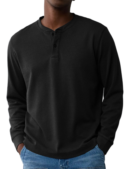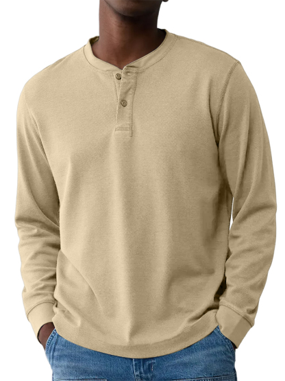 Men's Henley Collar Basic Casual Long-sleeved Top