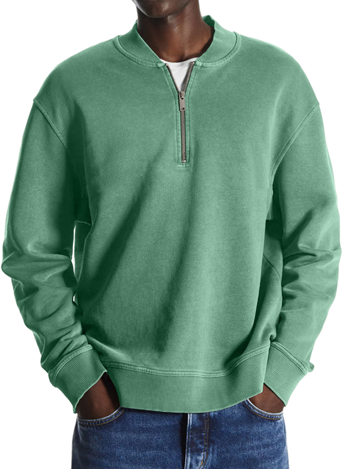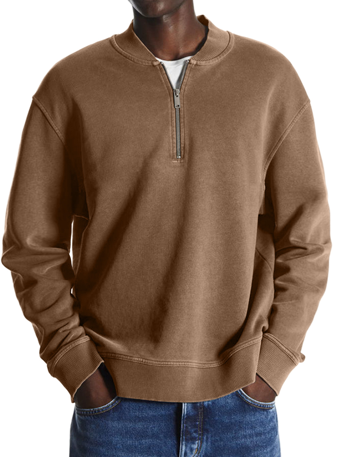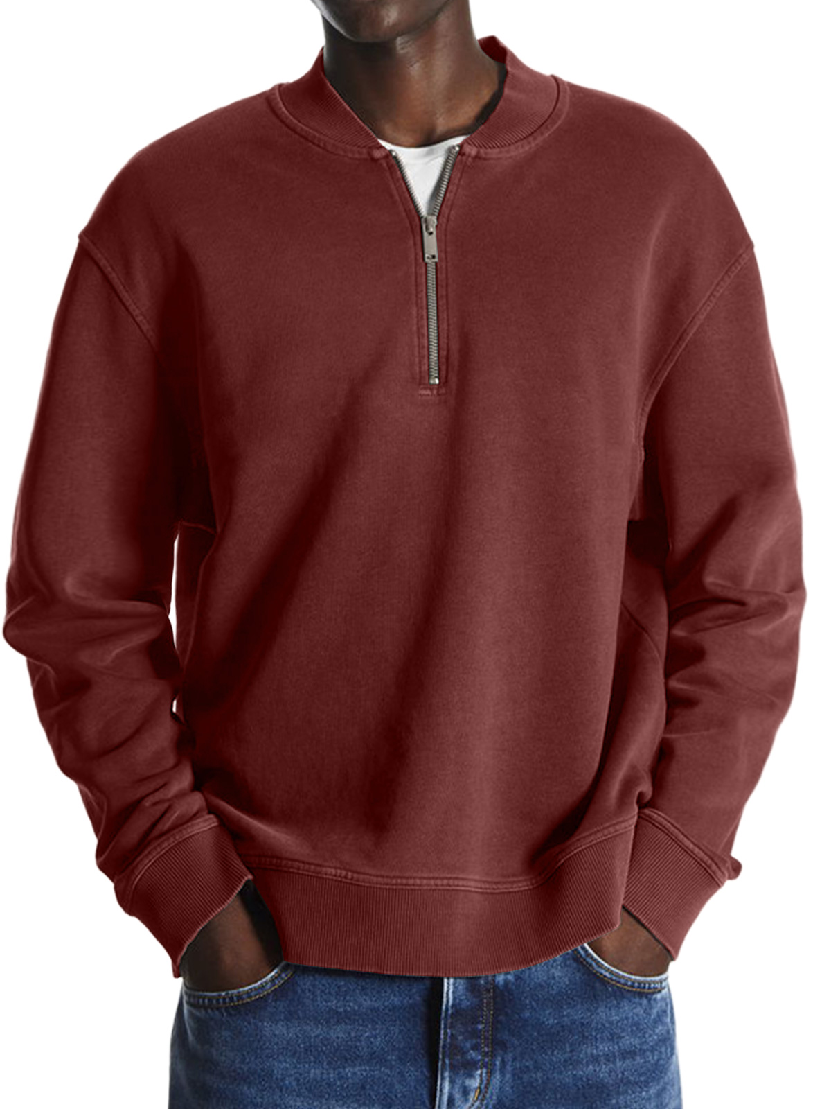 Men's Retro Baseball Collar Solid Color Casual And Comfortable Sweatshirt