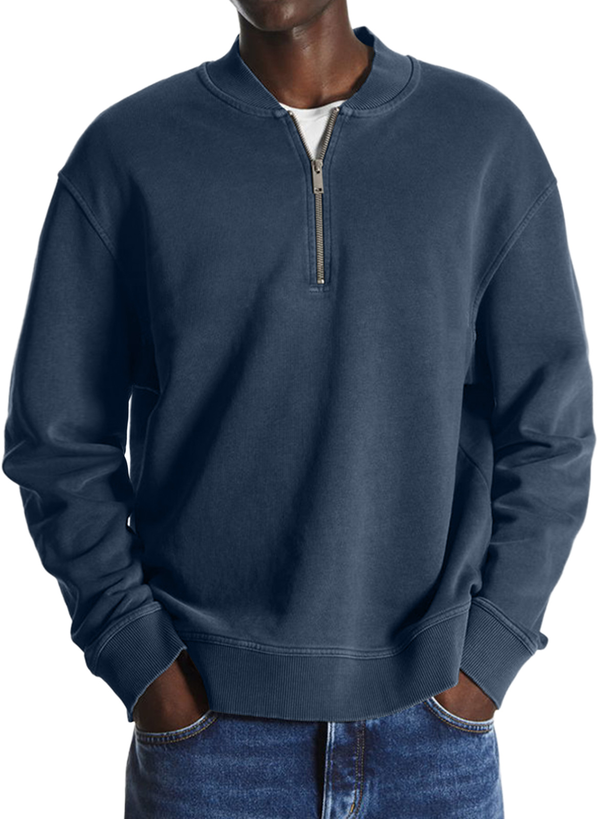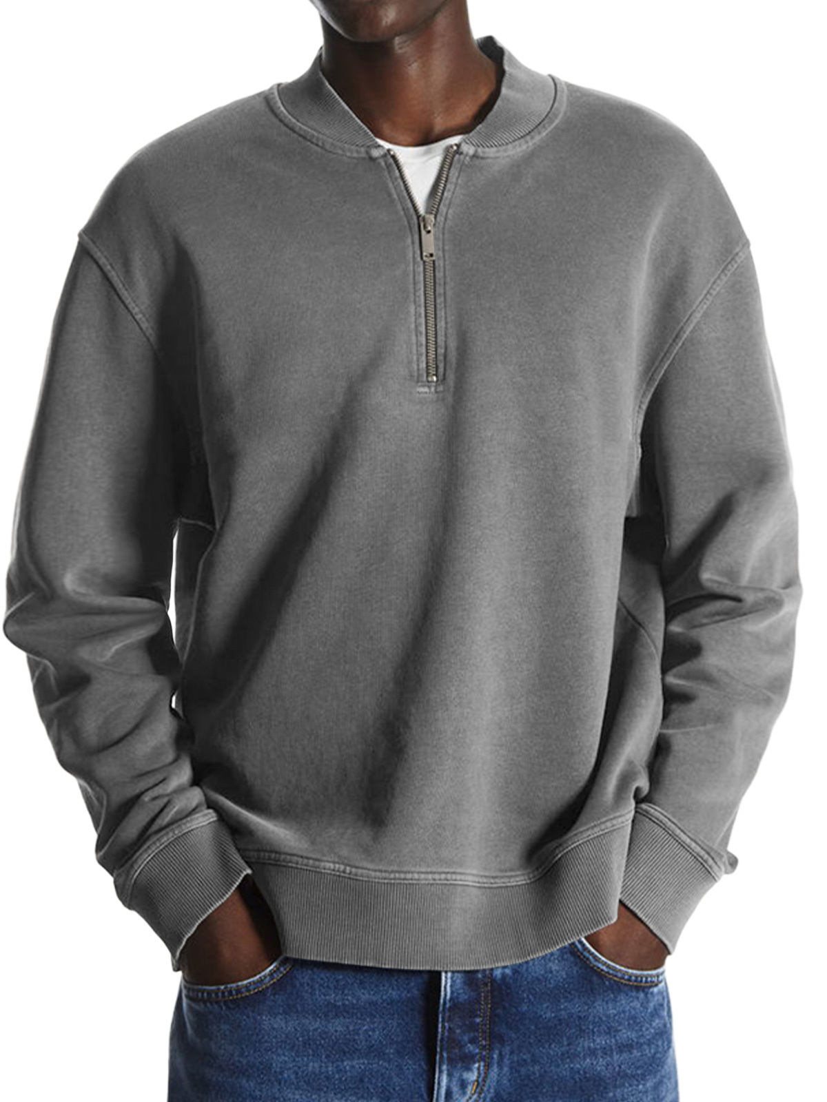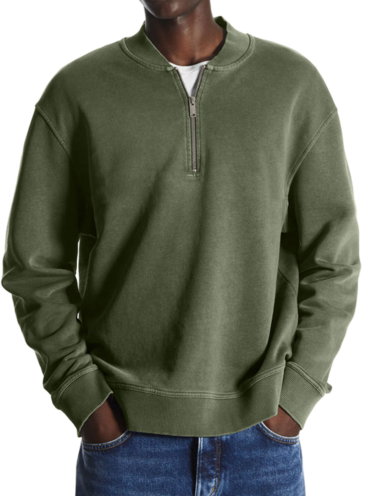 Men's Retro Baseball Collar Solid Color Casual And Comfortable Sweatshirt