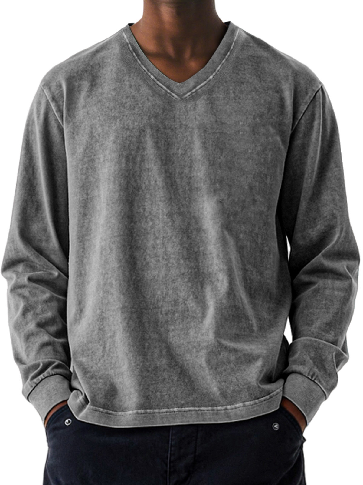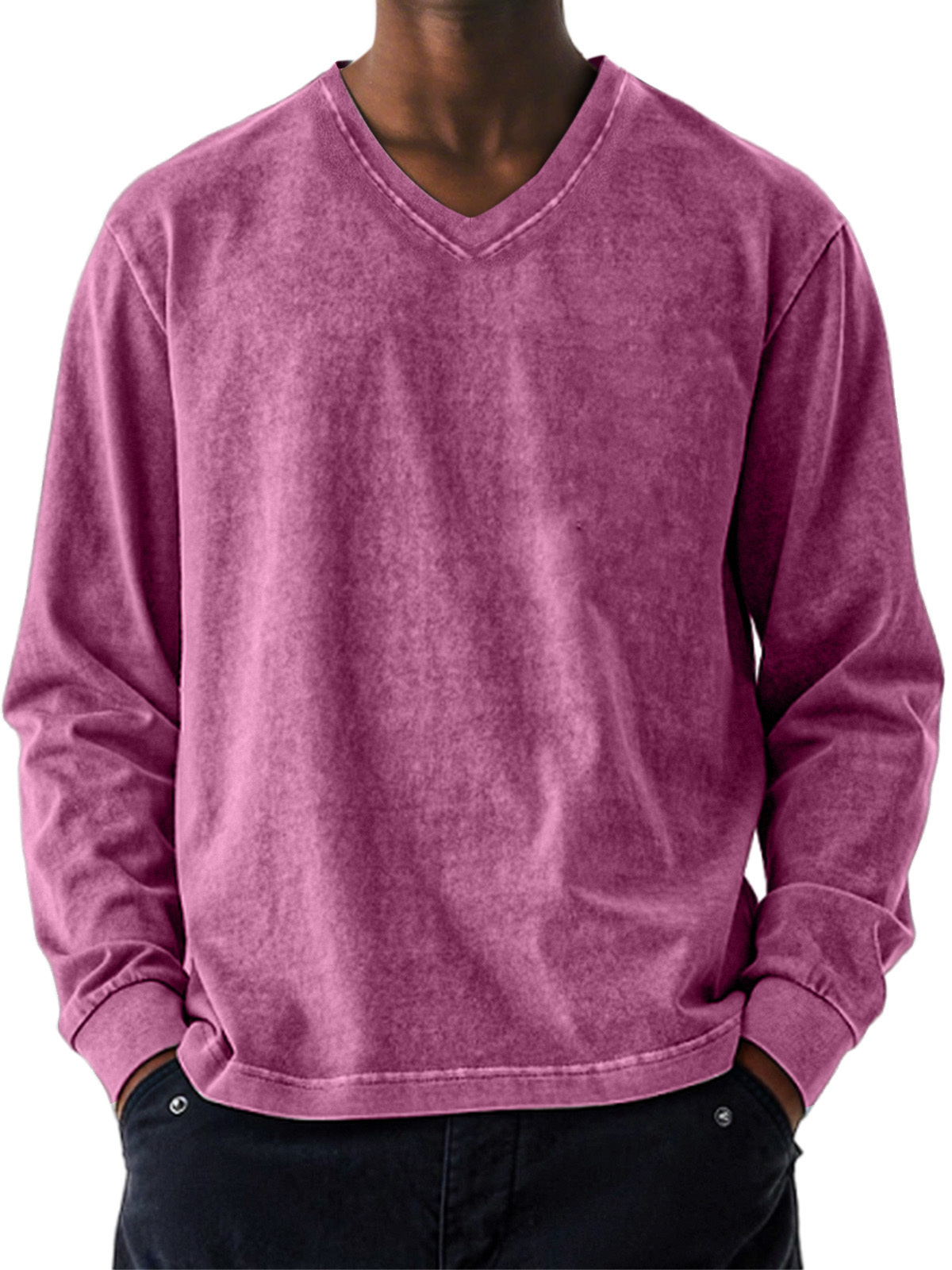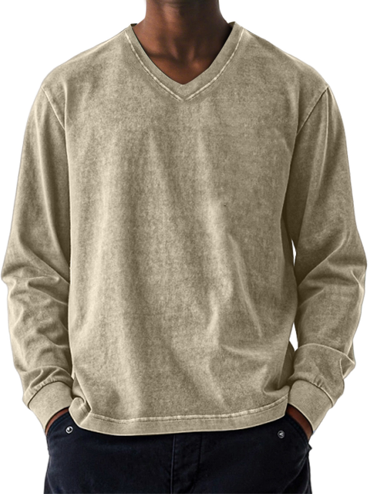 Men's Retro Casual Simple V-neck Long-sleeved T-shirt