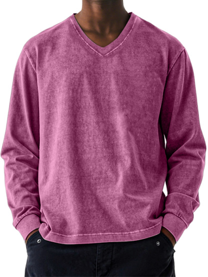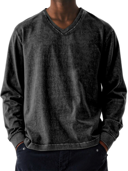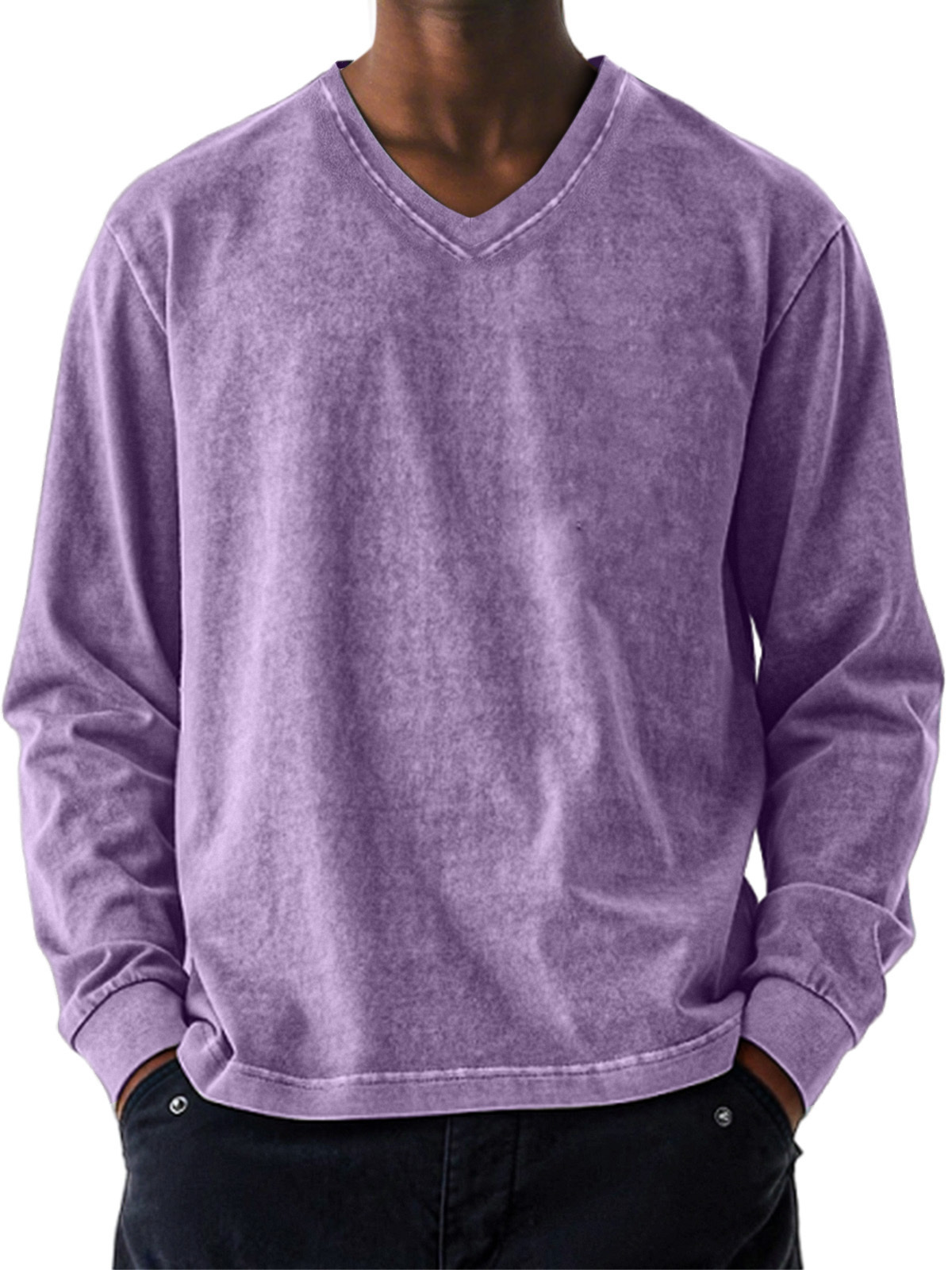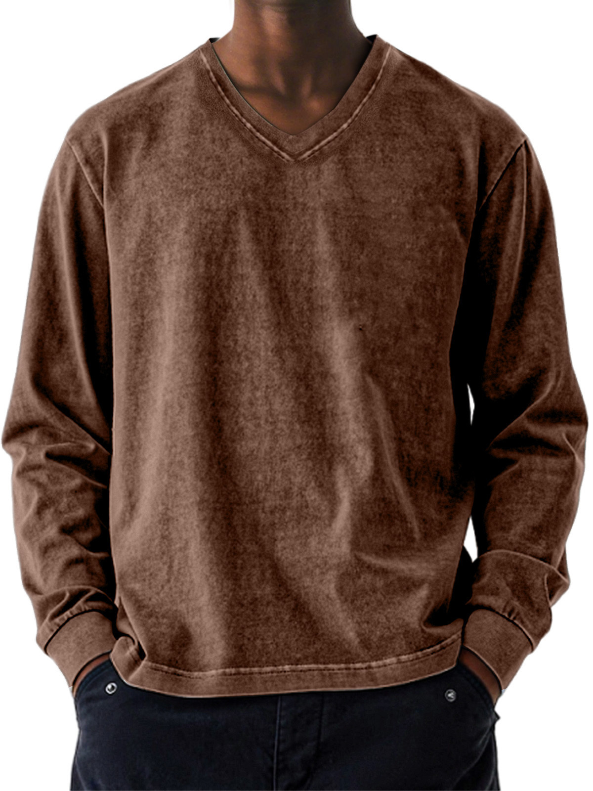 Men's Retro Casual Simple V-neck Long-sleeved T-shirt