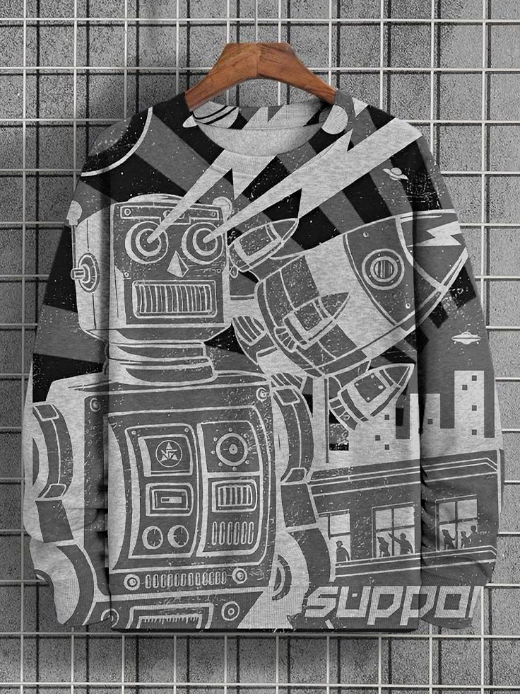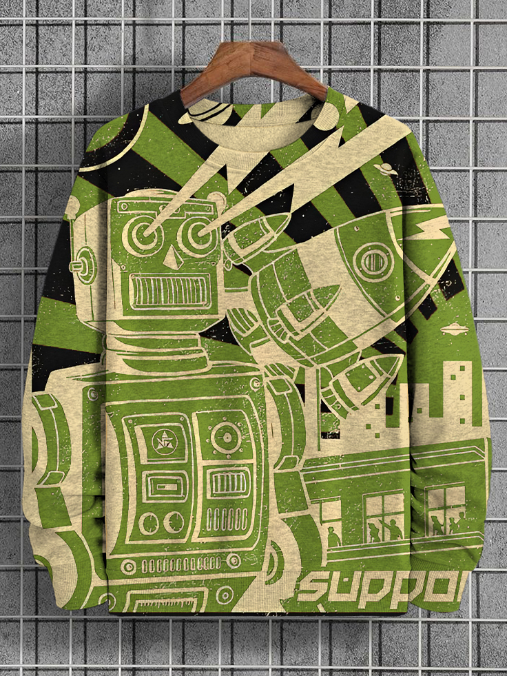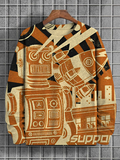 Men's Retro Robot And Rocket Art Print Casual Sweatshirt