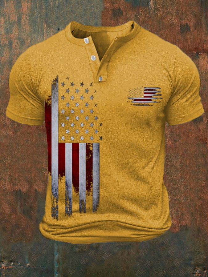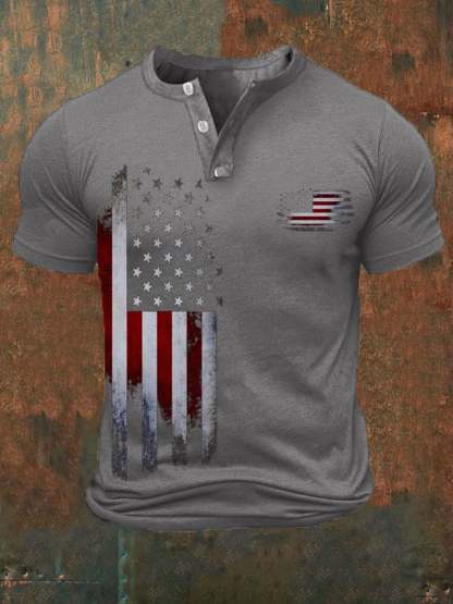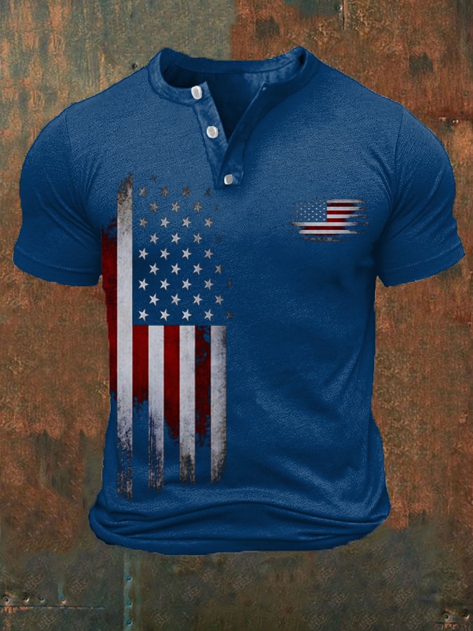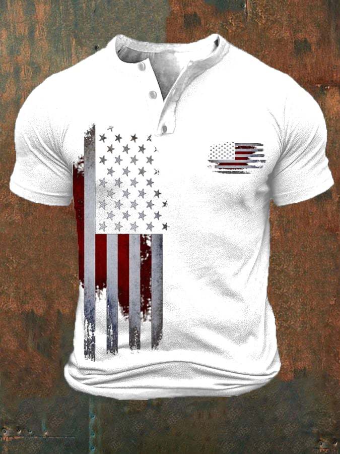 Men's Vintage Flag Print Casual Button Polo Shirt