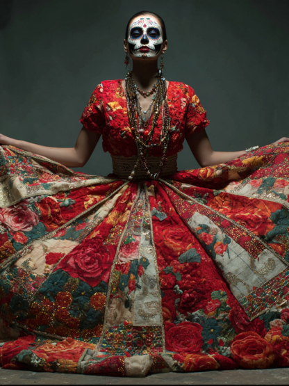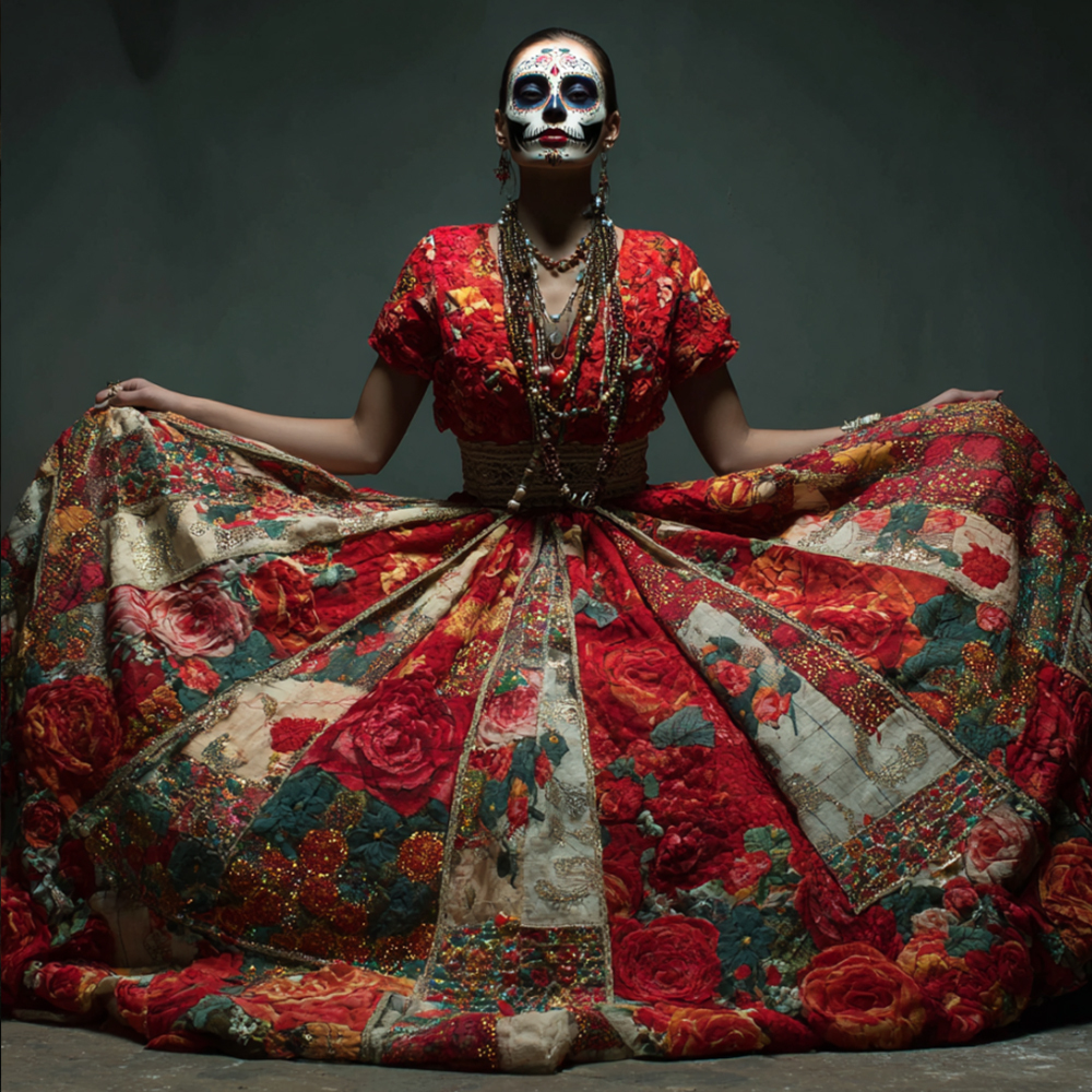 Mexican Day Of The Dead Floral Embroidery Sequin Short-sleeved Patchwork Dress