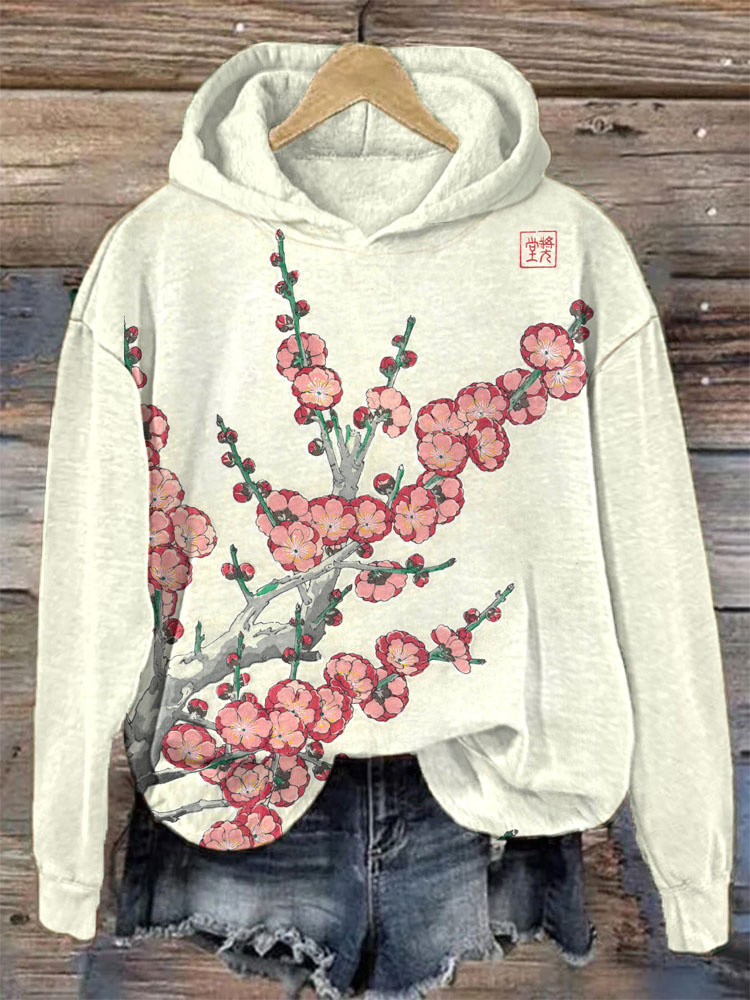 Plum Blossom Art Painting Print Casual Fashion Hoodie