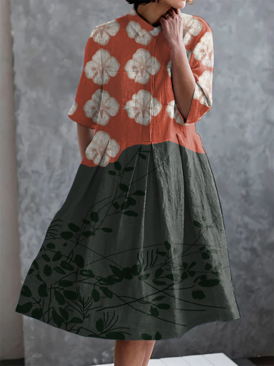 Retro Japanese Patchwork Print Casual Elegant Pocket Half Sleeve Dress