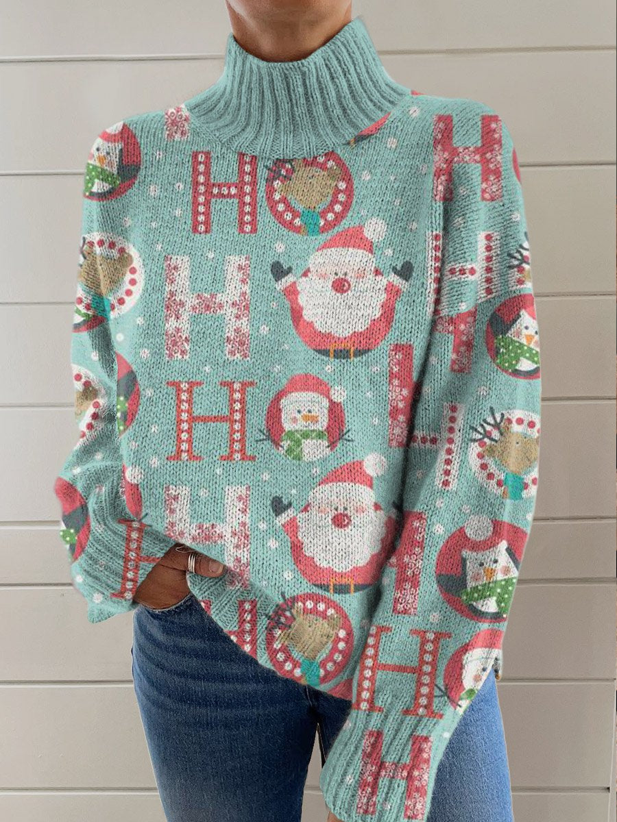 Santa Claus Art Print Knit Turtleneck Pullover Sweater
