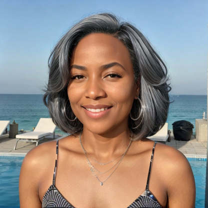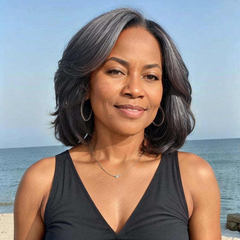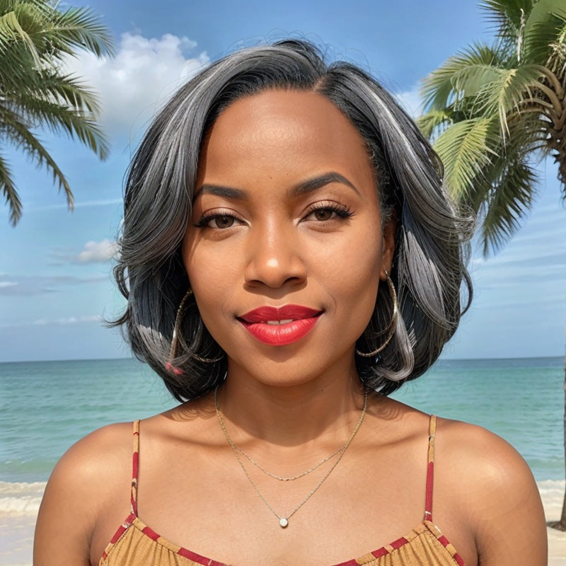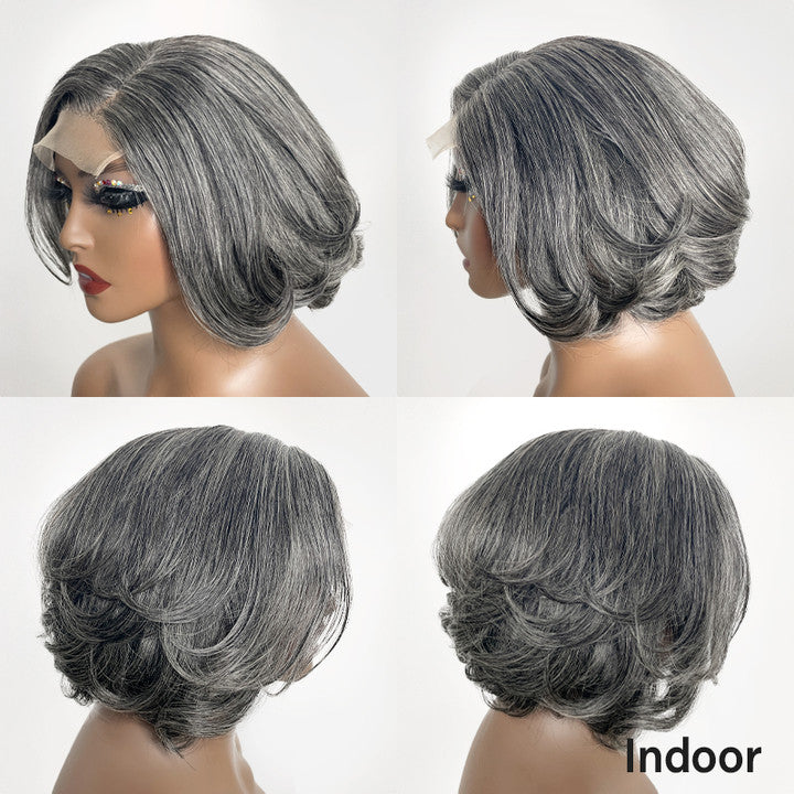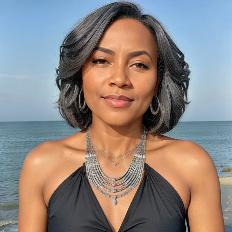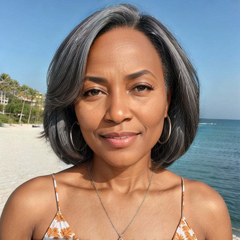 Trendy Limited Design | Salt & Pepper Side Part Bob Style Glueless 5x5 Closure Lace Wig
