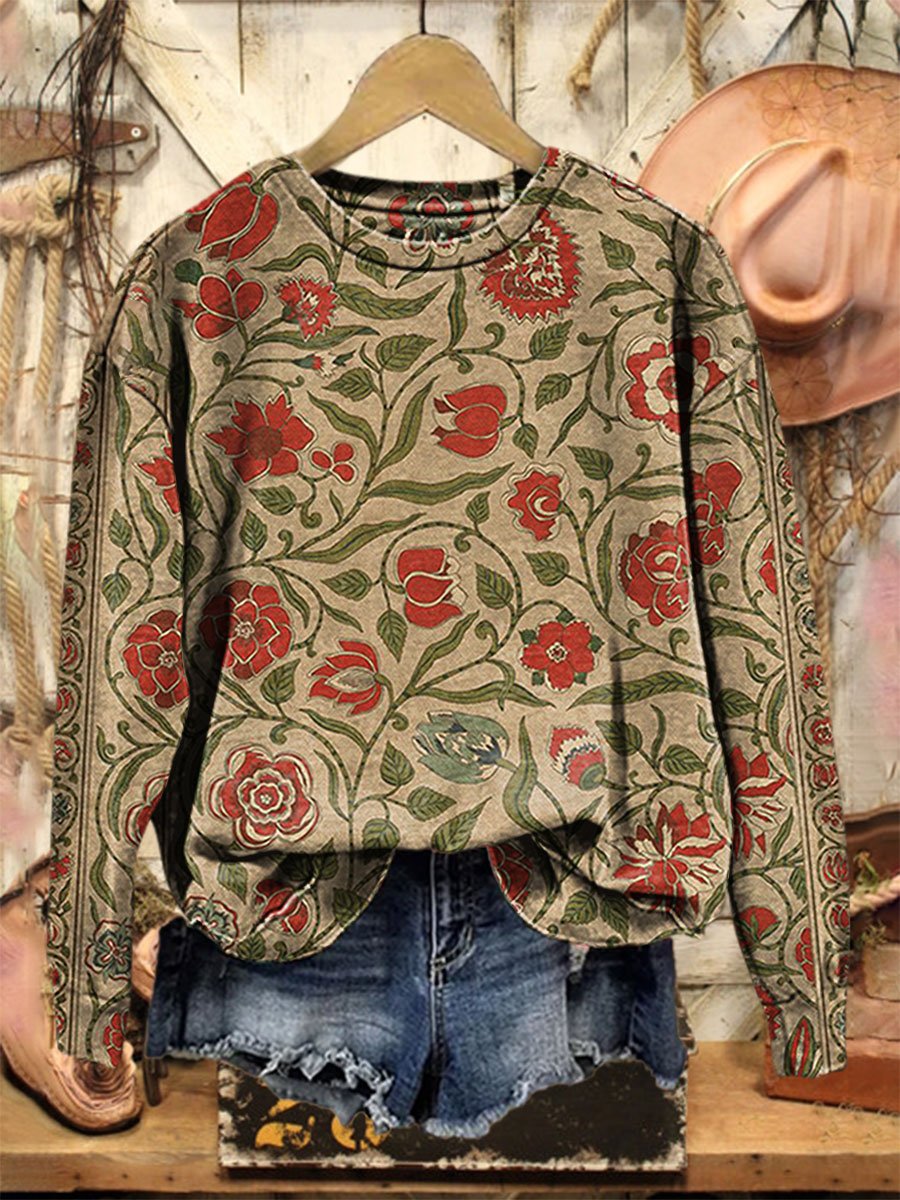 Vintage Floral Print Casual Sweatshirt