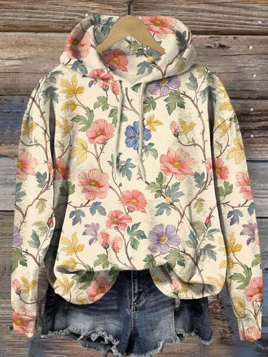 Vintage Lovely Floral Art Print Casual Hoodie Sweatshirt