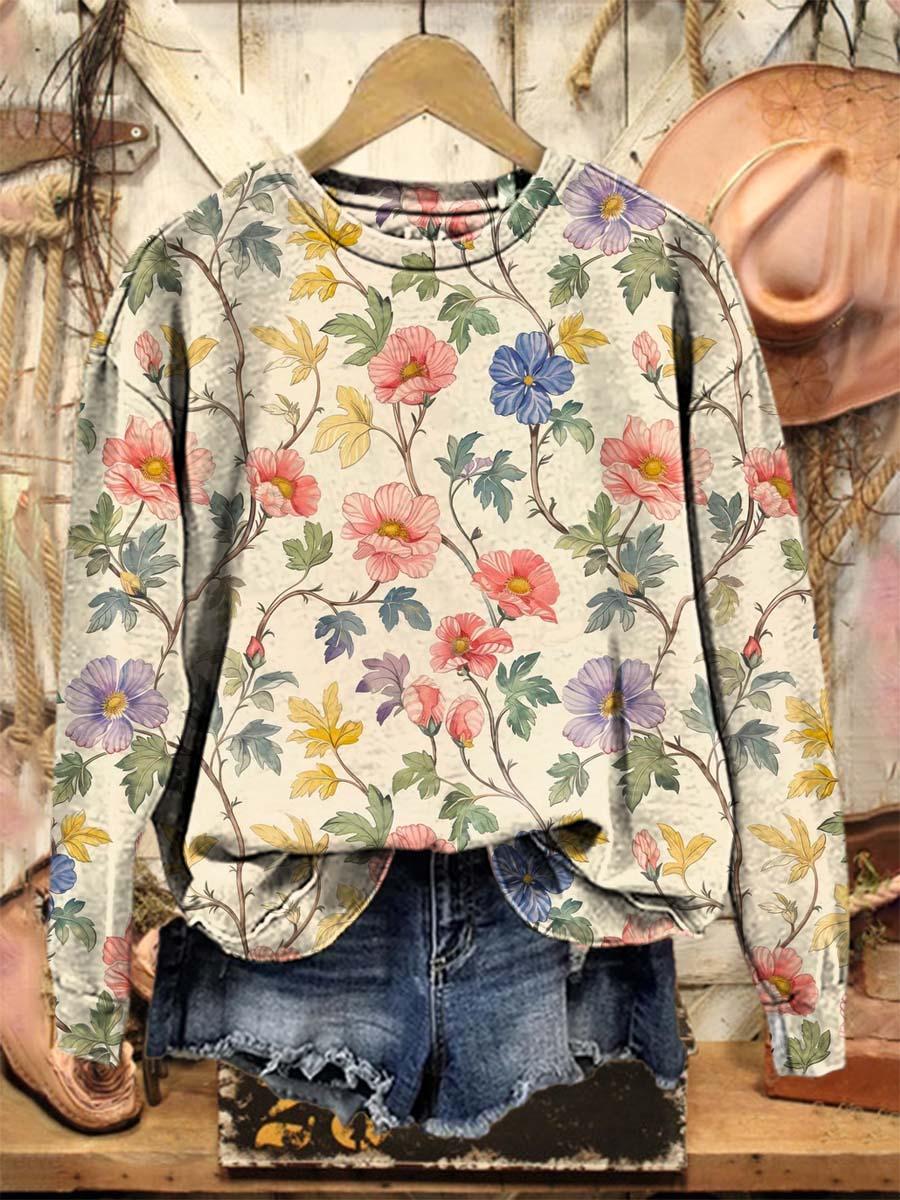 Vintage Lovely Floral Art Print Casual Sweatshirt