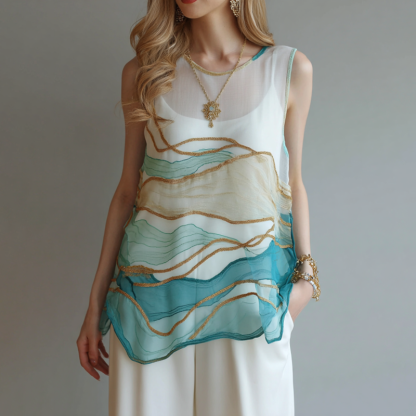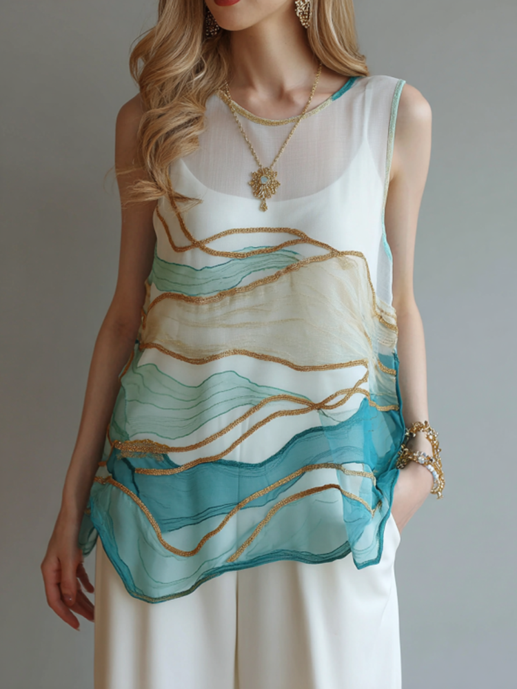 Vintage Marble Texture Collection Retro Bohemia Women Style Gradient Gilded Pattern Linen Tank Top