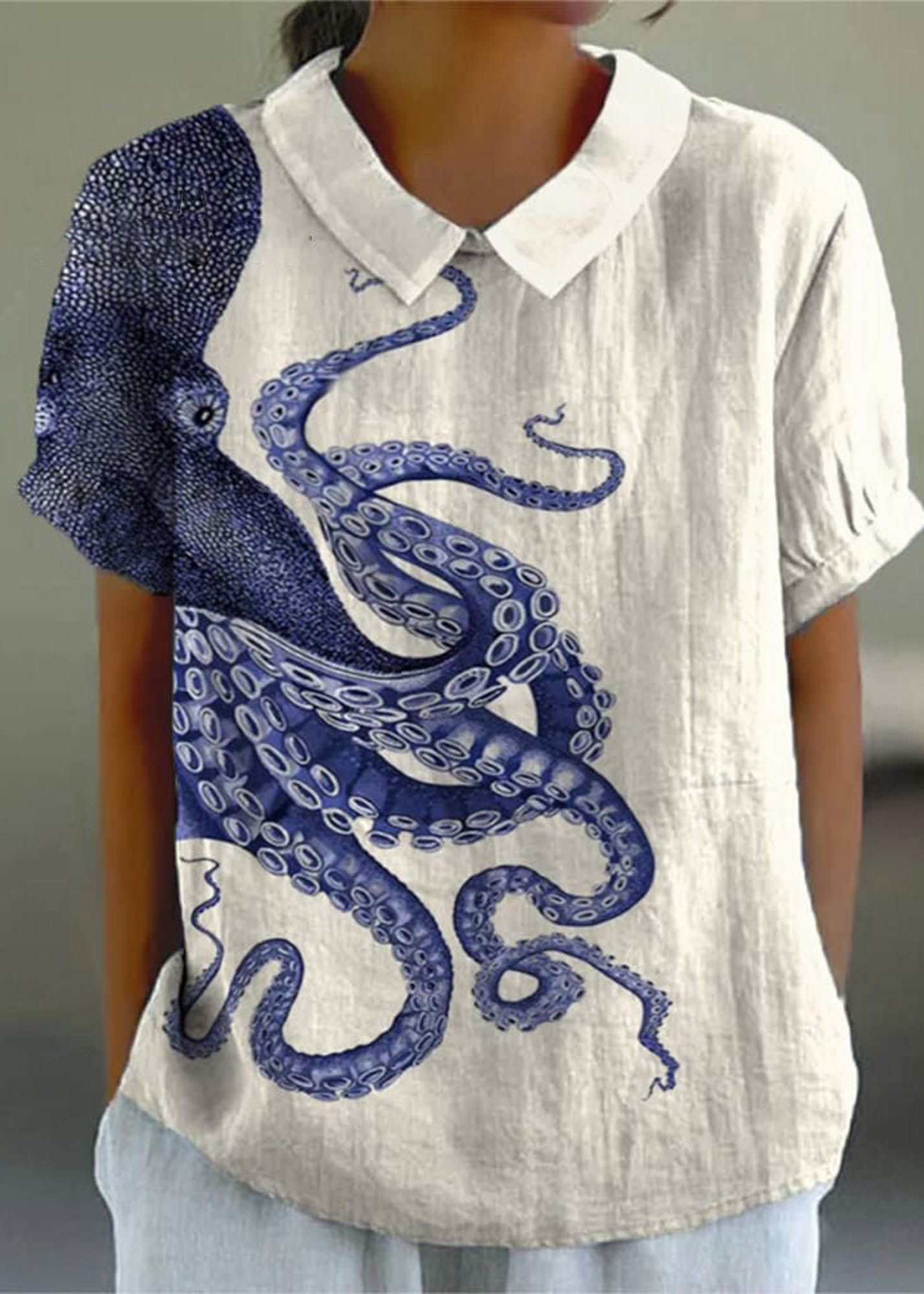 Women's Deep Sea Octopus Tentacles Art Print Casual Cotton And Linen 3/4 Sleeve Shirt