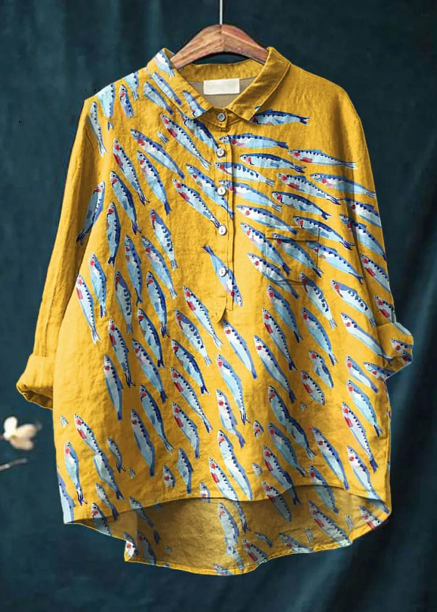 Women's Fish Art Print Casual Cotton And Linen Shirt