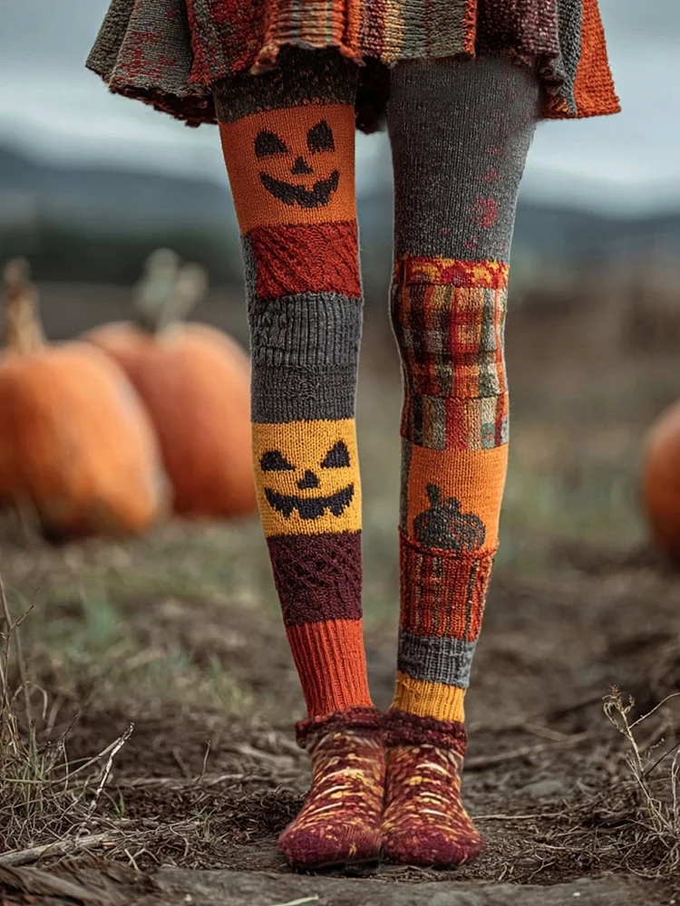 Women's Halloween Pumpkin Face Patchwork Art Casual Leggings