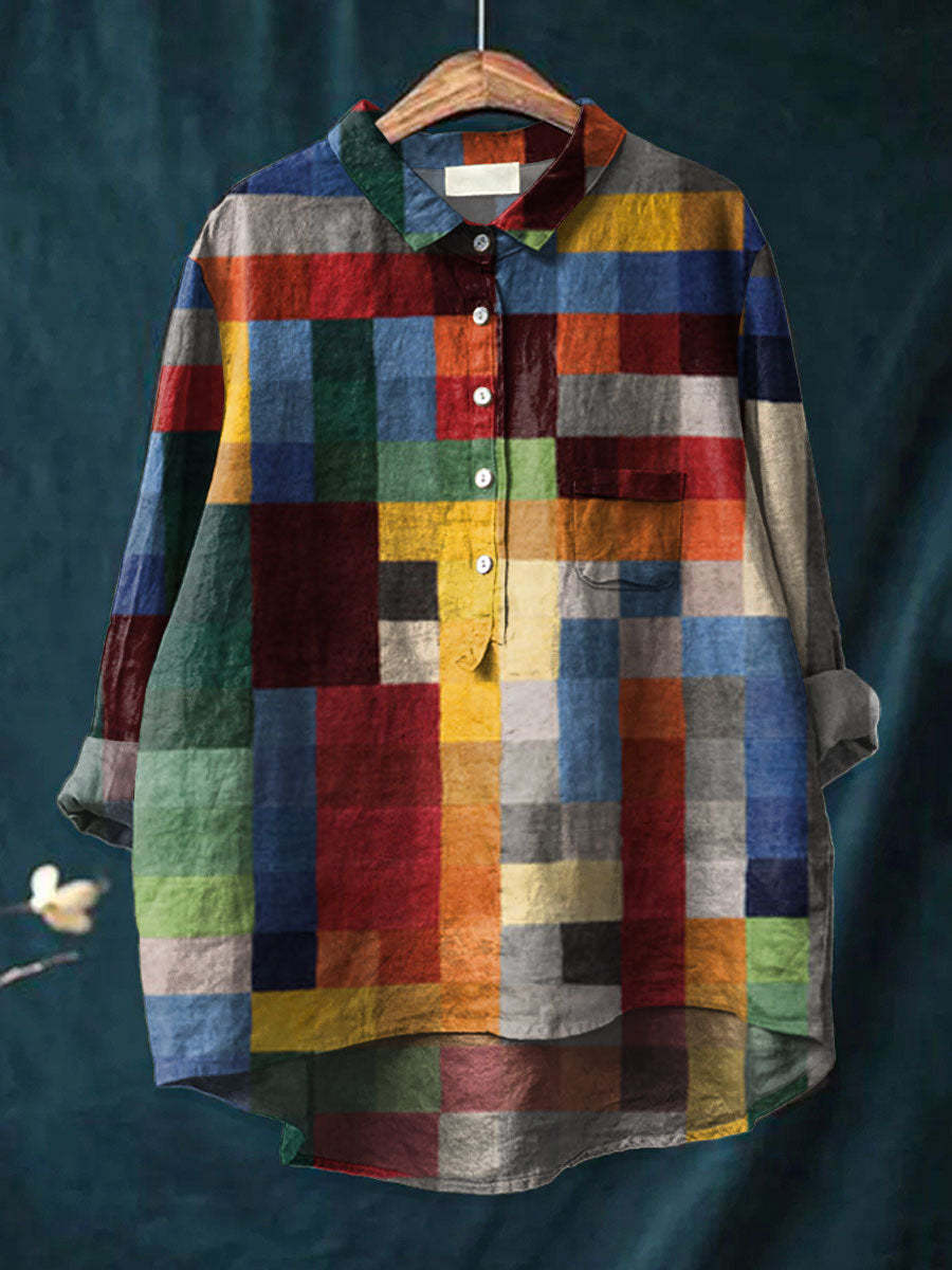 Women's Vintage Art Print Casual Cotton And Linen Shirt