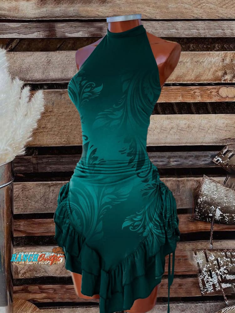 Women's Vintage Art Print Halter Neck Dress