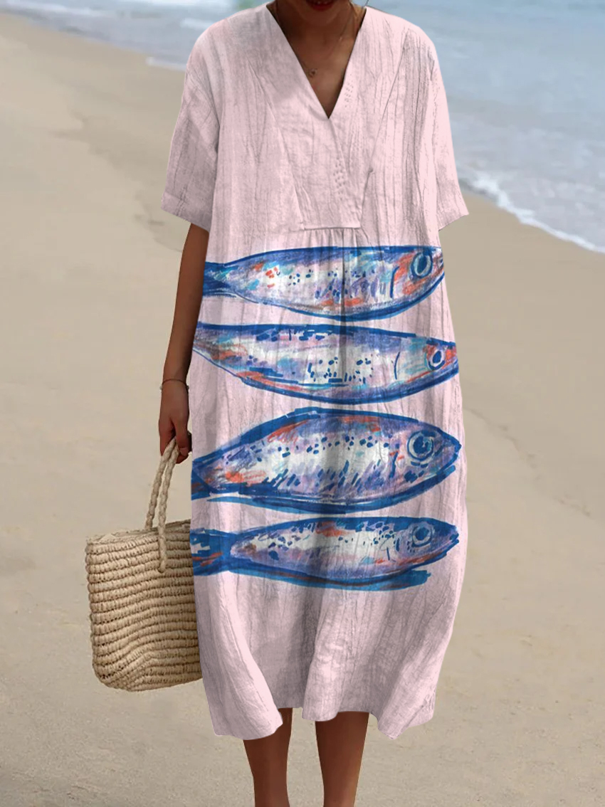 Women's Vintage Fish Art Print Flowy Dress