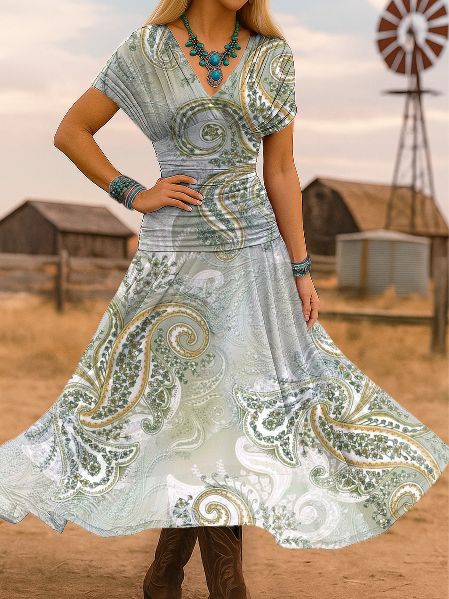 Women's Vintage Paisley Print Stretch-mesh Maxi Dress